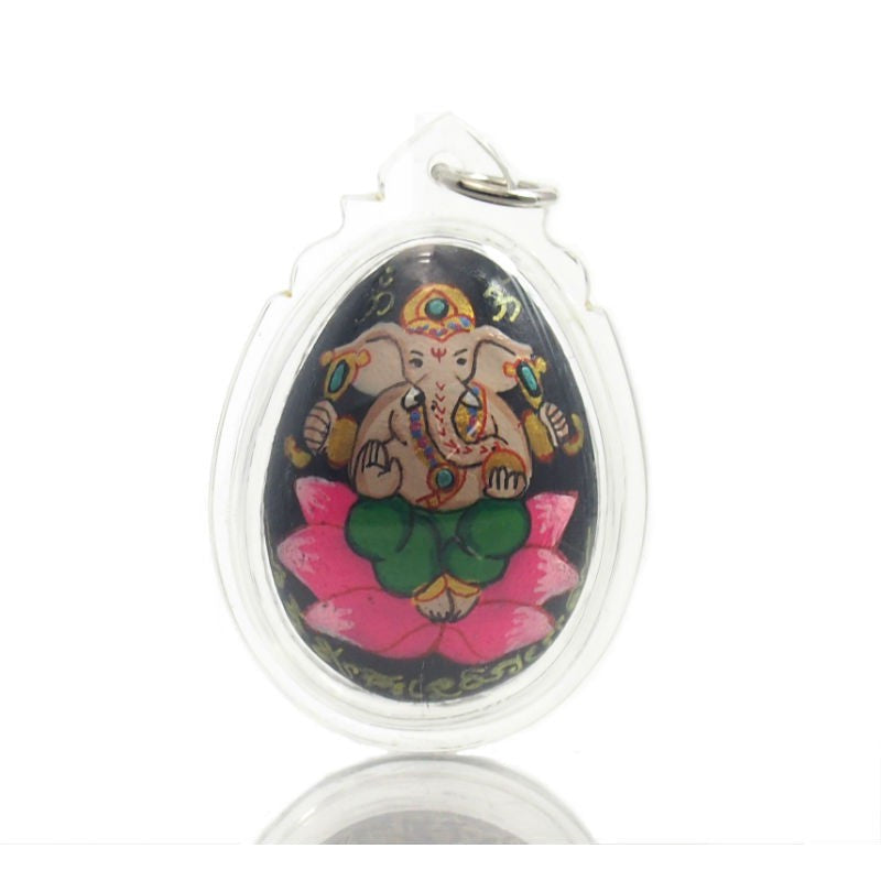 Ganesha "Phra Pi Khanet" Lotus Oval Thai Amulet Pendant - 26