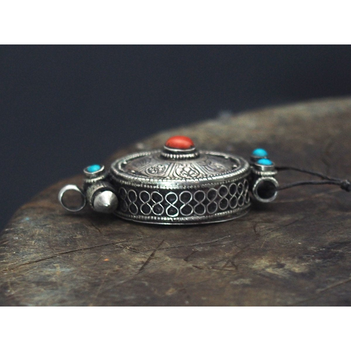 Gau Sterling Silver Prayer Box Pendant from Bhutan