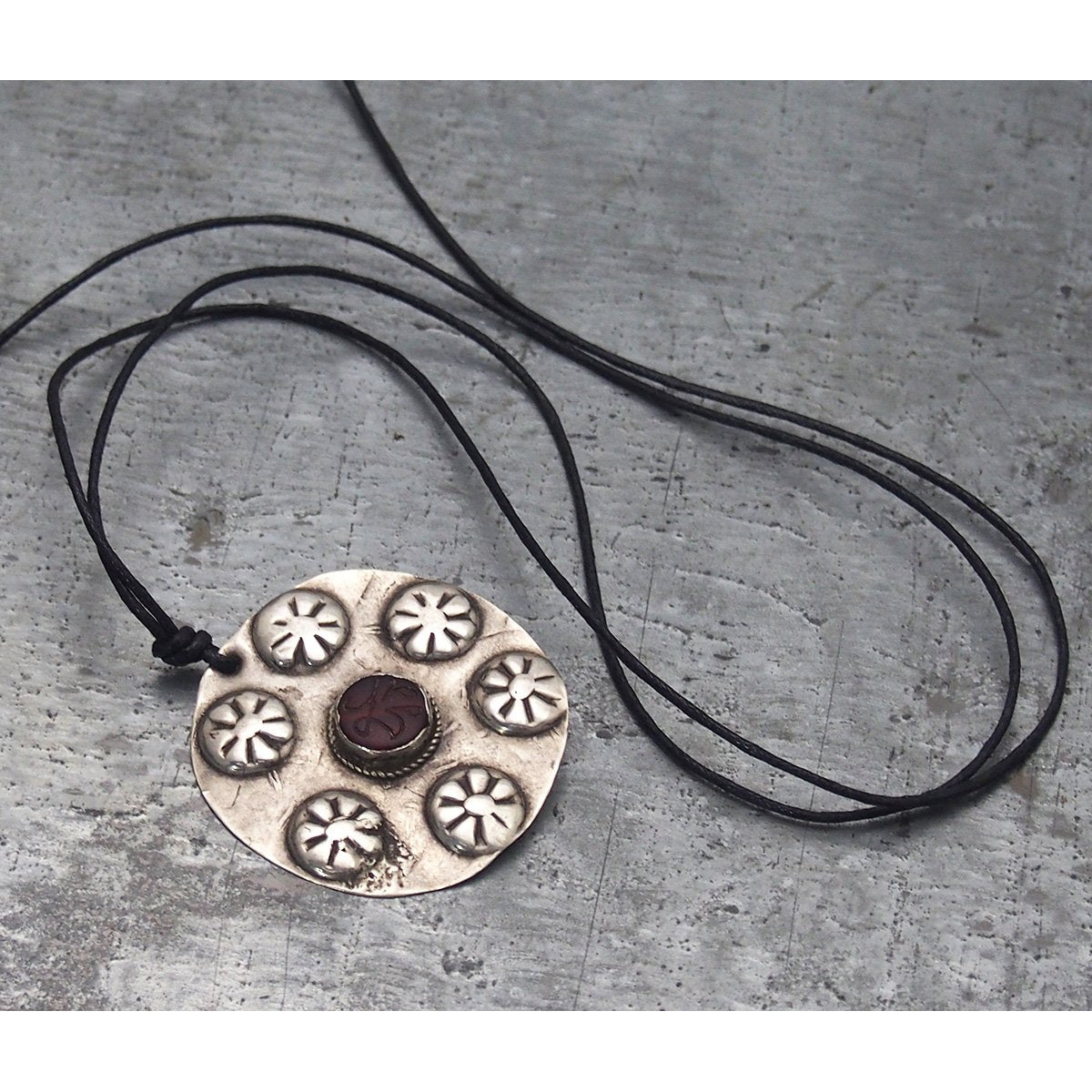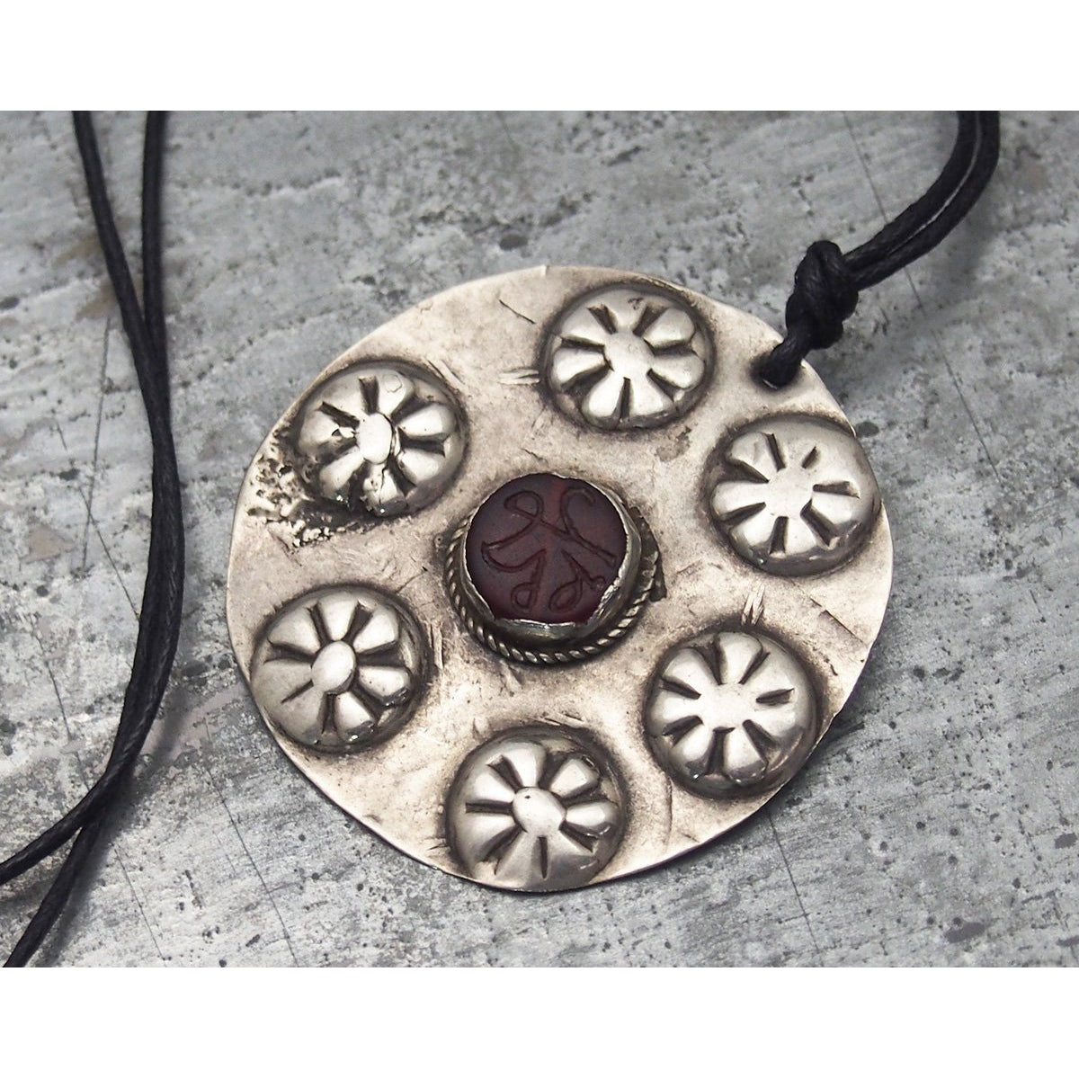 Turkmen Hadj Bead Silver Moon Pendant ca. 1950
