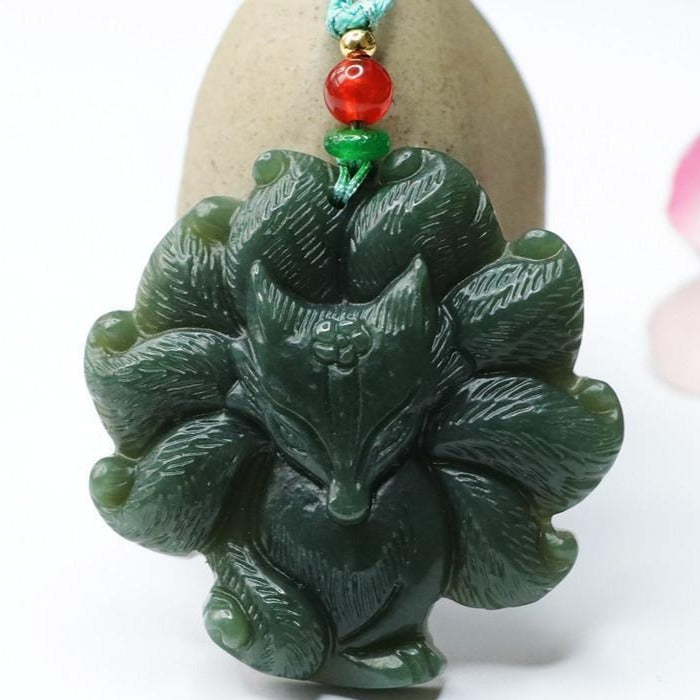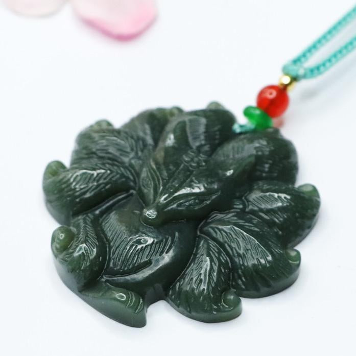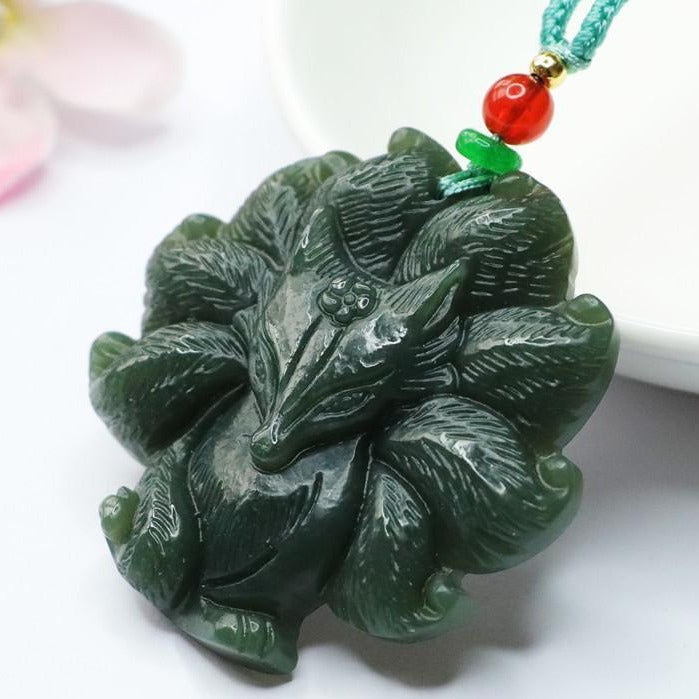 Hetian Natural Jadeite Jade Fox Pendant Necklace