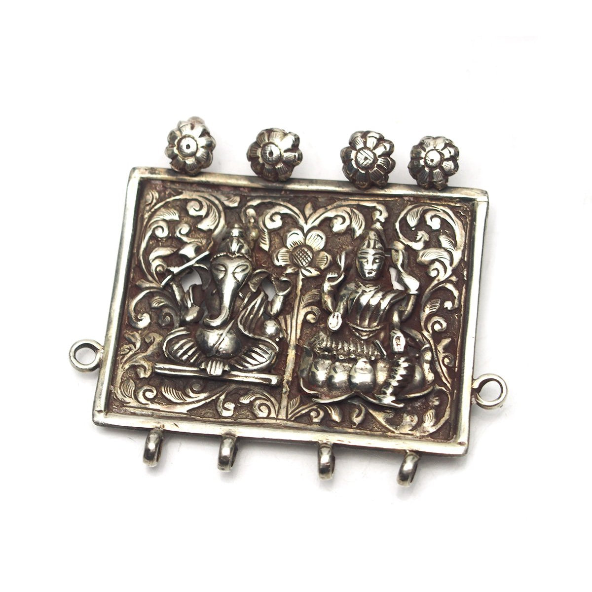 Lakshmi and Ganesha Large Sterling Silver Pendant