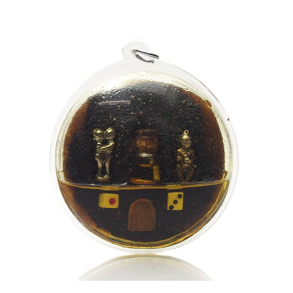 - Materials: hand carved cow bone by a Master Amulet Maker, painted and adorned with Sacred Yants and Ritualistic symbols, suspended in oil inside a custom plastic case.