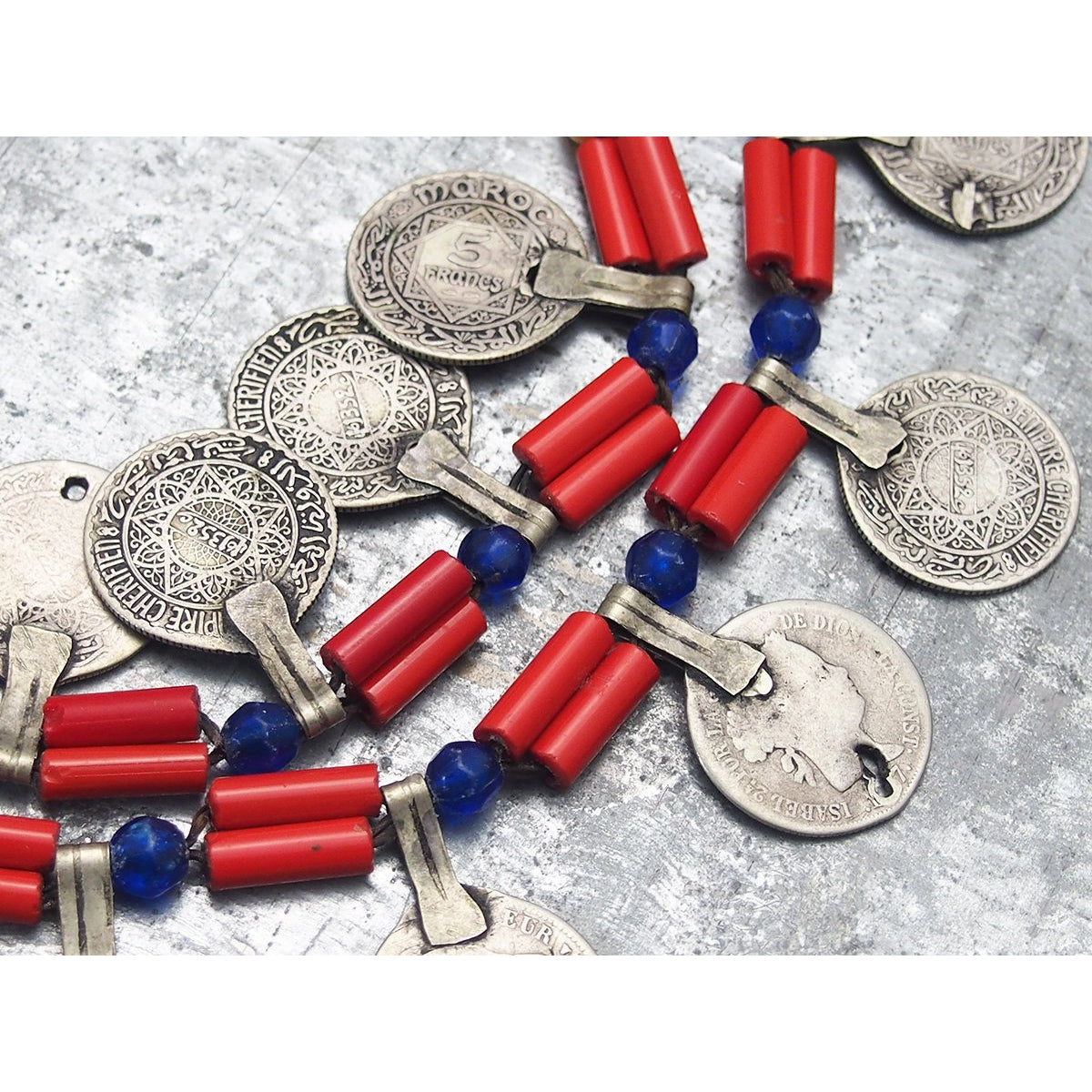Moroccan Antique Silver Coin with Seal of Solomon Dowry Necklace 2