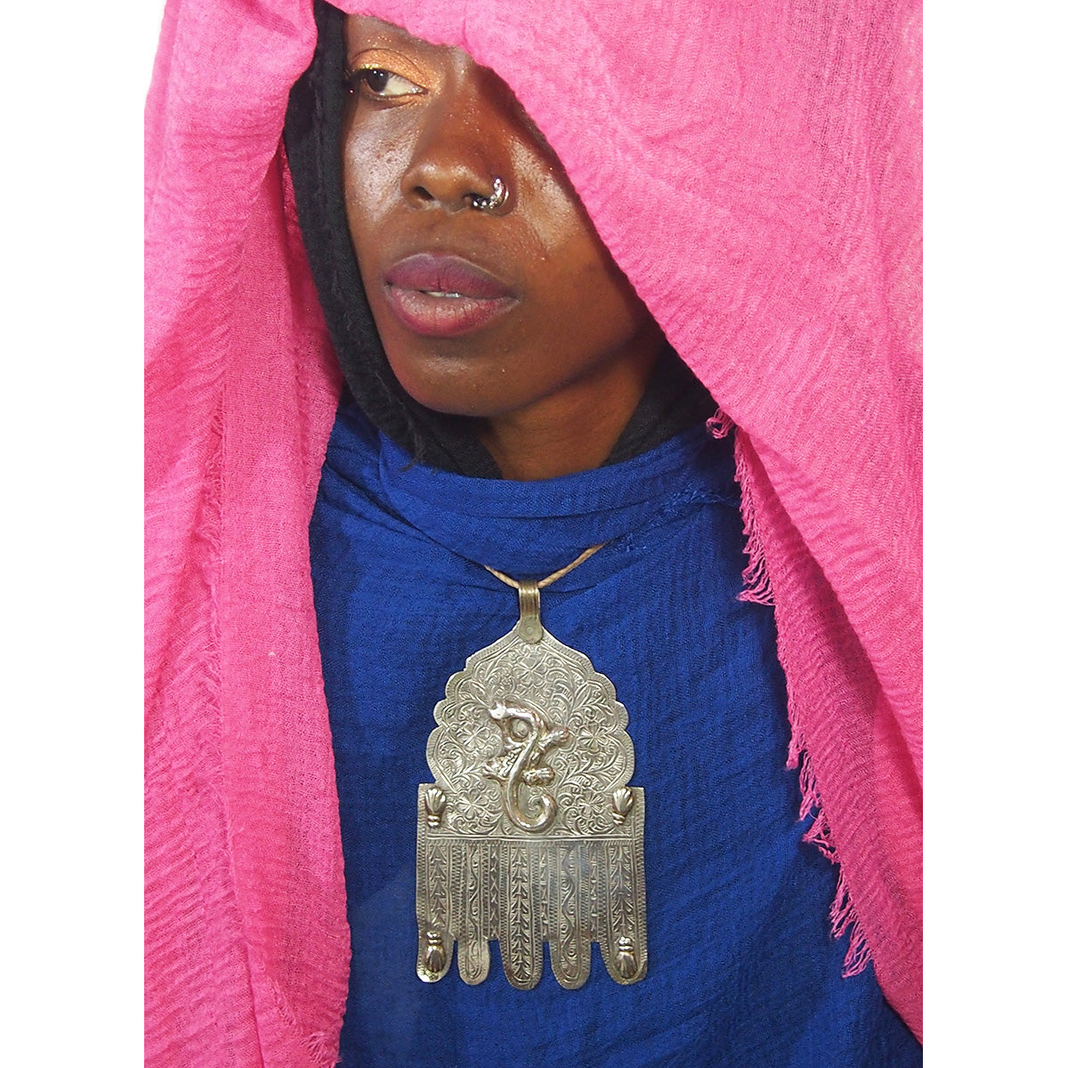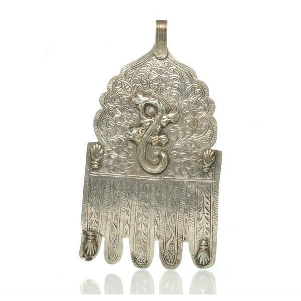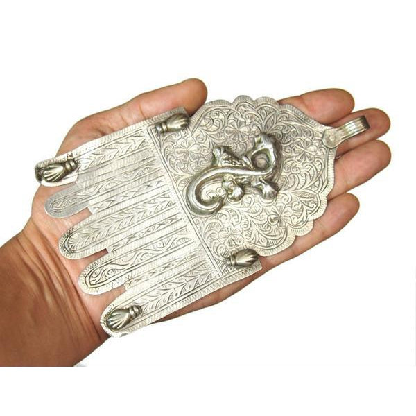 Moroccan Hamsa Pendant with Salamander and Hand Overlays