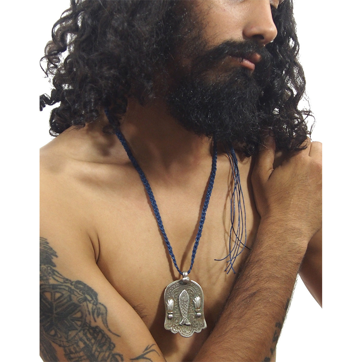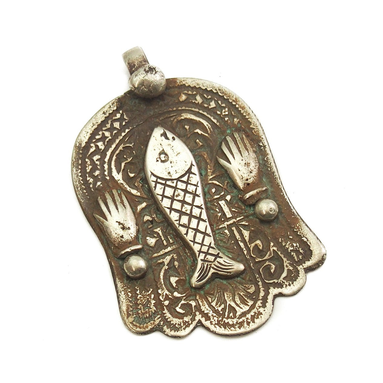Moroccan Hamsa Pendant w/ Fish and Hands Overlay