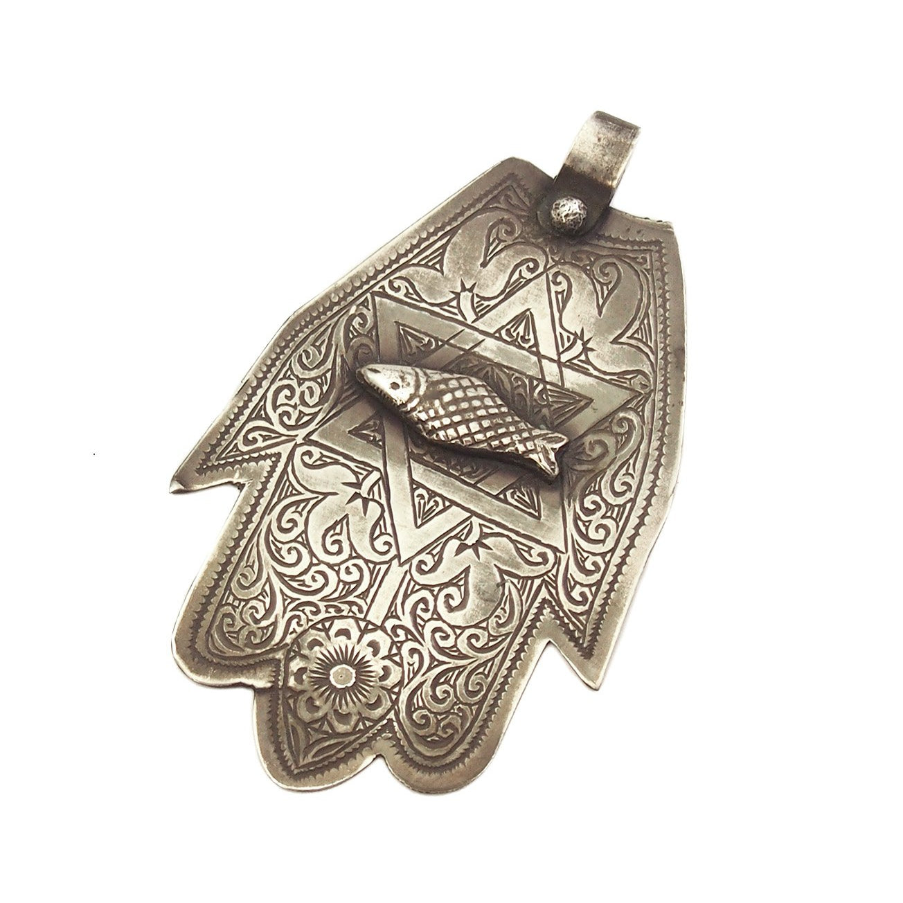 Moroccan Hamsa Pendant w/ Fish and Star of David