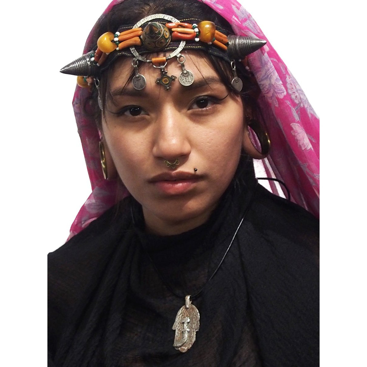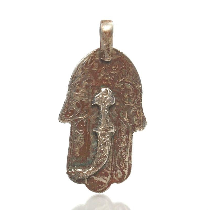 Moroccan Hamsa Pendant w/ Koummya or Jambiya Dagger Overlay