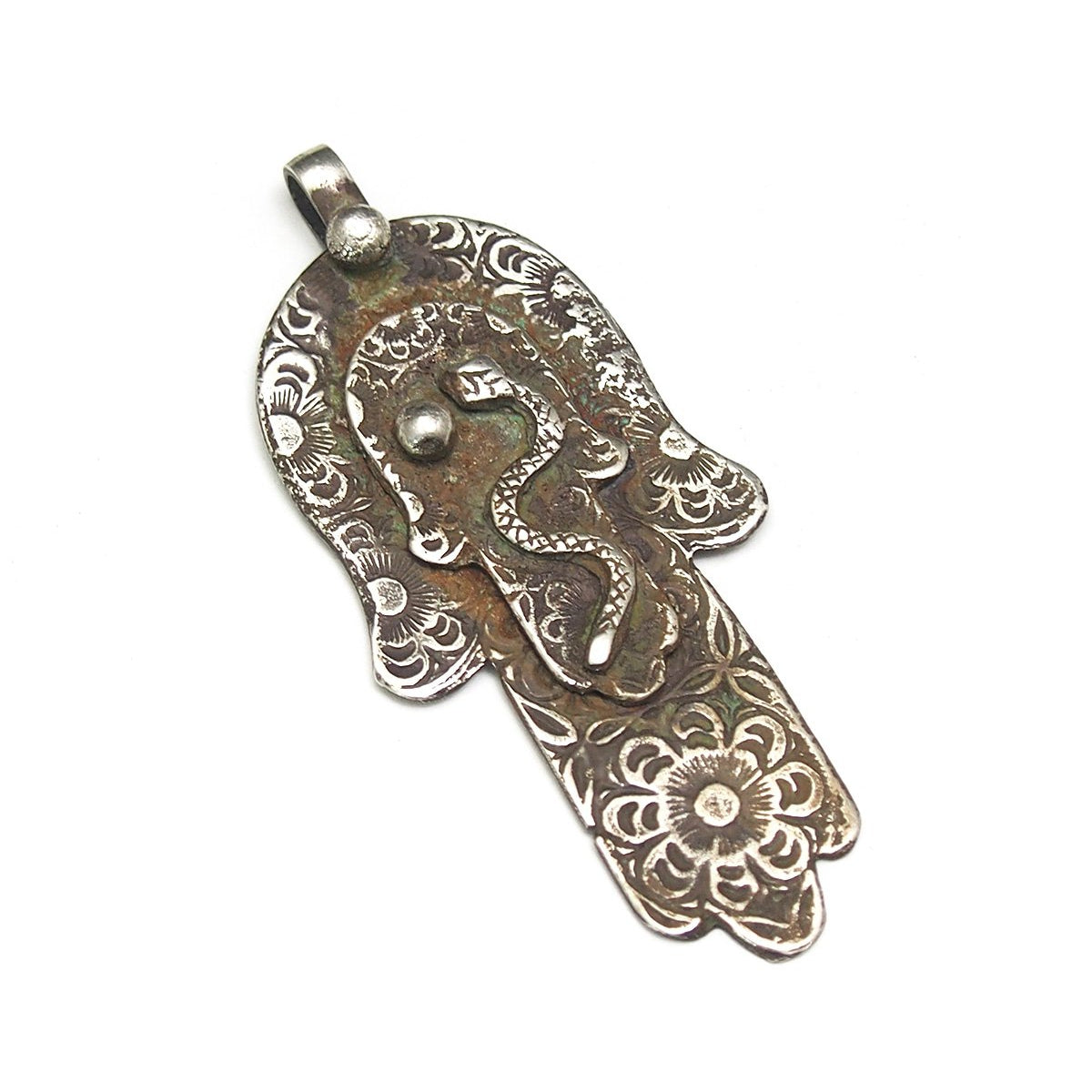 Hamsa Pendant w/ Serpent / Snake and Egg Motherhood Hand of Protection FND
