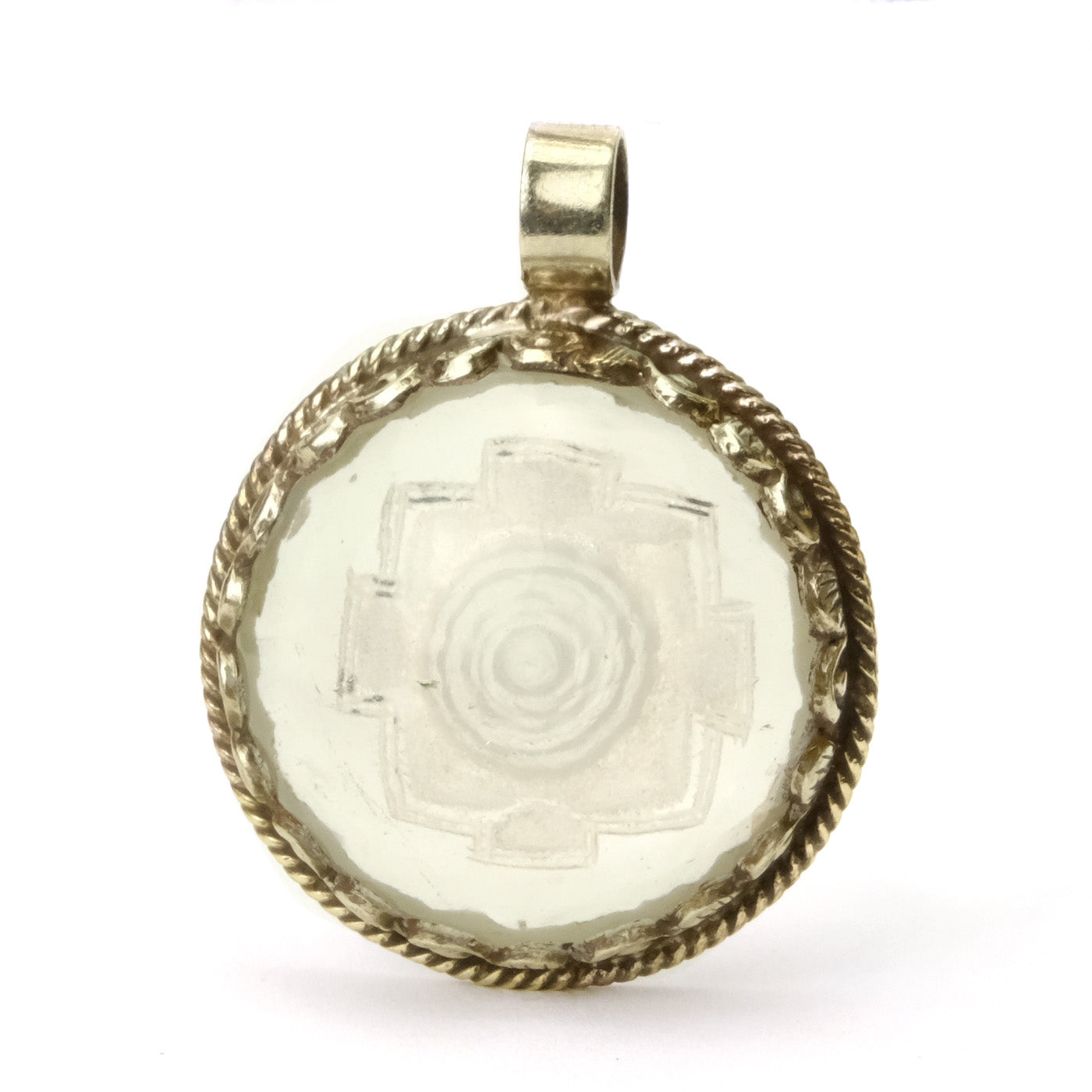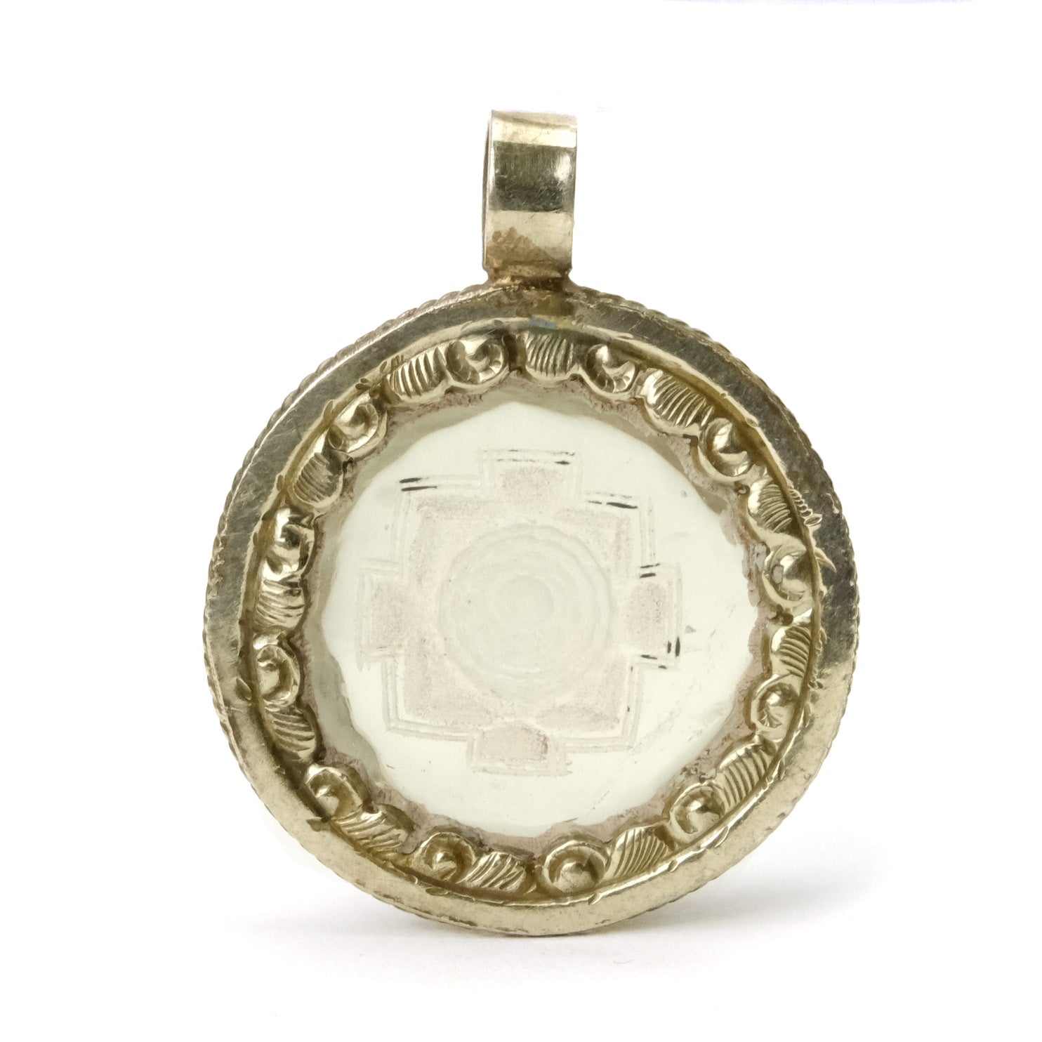 Shri Yantra Tibetan Mystical Diagram Symbol Etched in Clear Quartz # 85 - 2