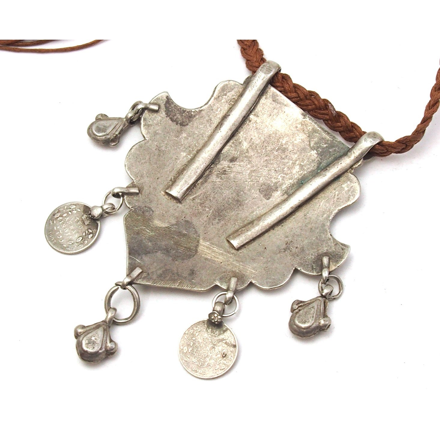 Peahen Capturing A Fish Silver Afghan Dowry Amulet Pendant Necklace