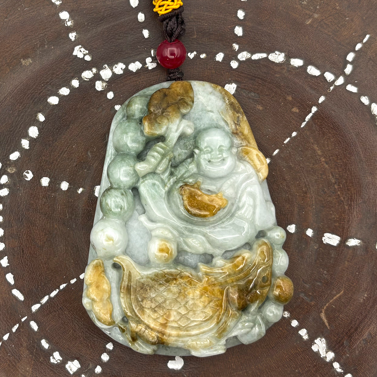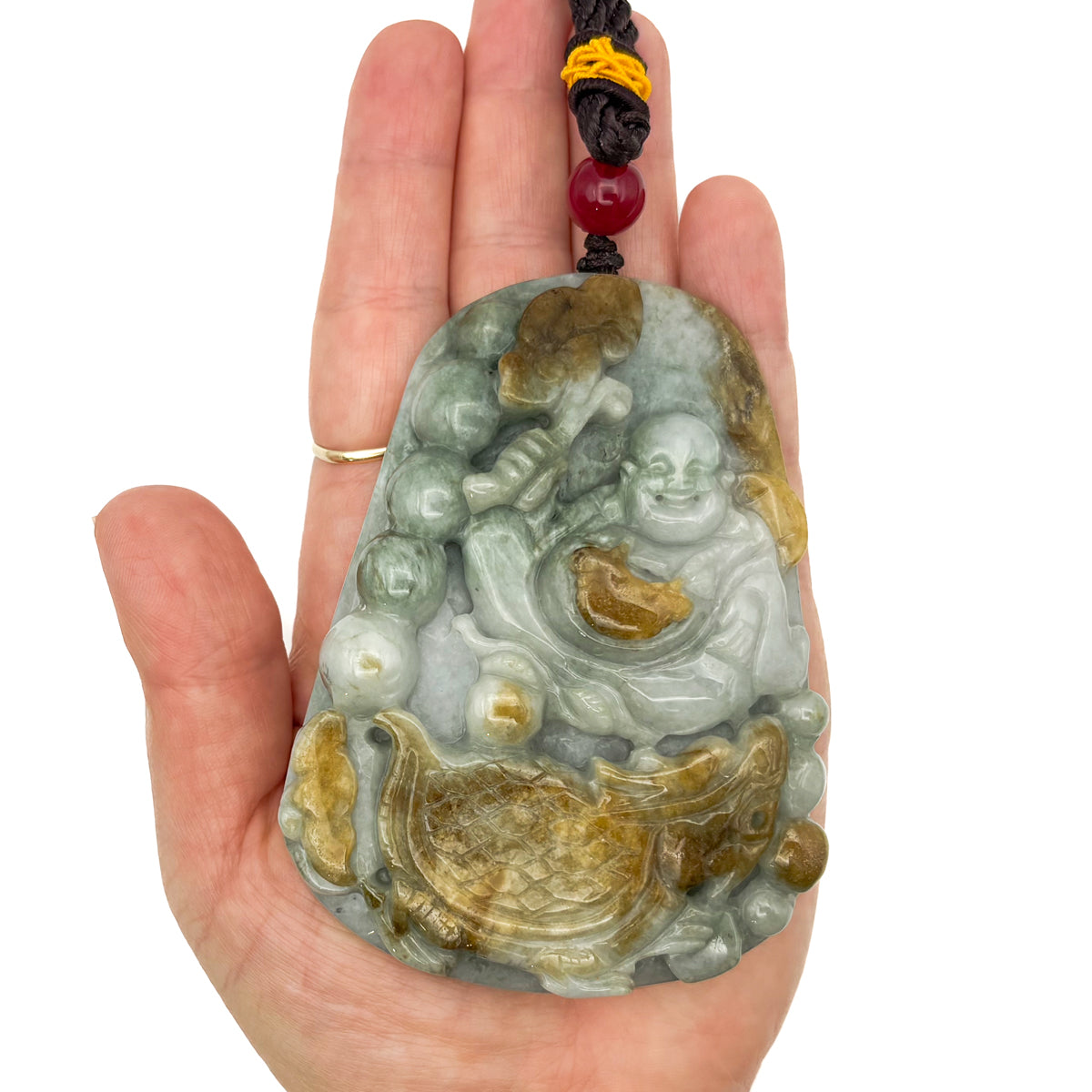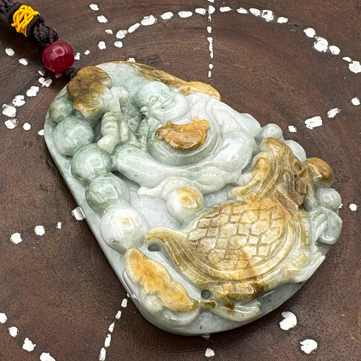 Certified Natural Type A Yellow Jadeite Jade Turtle Dragon Buddha Big Pendant