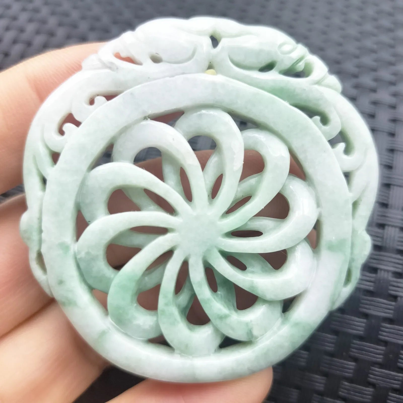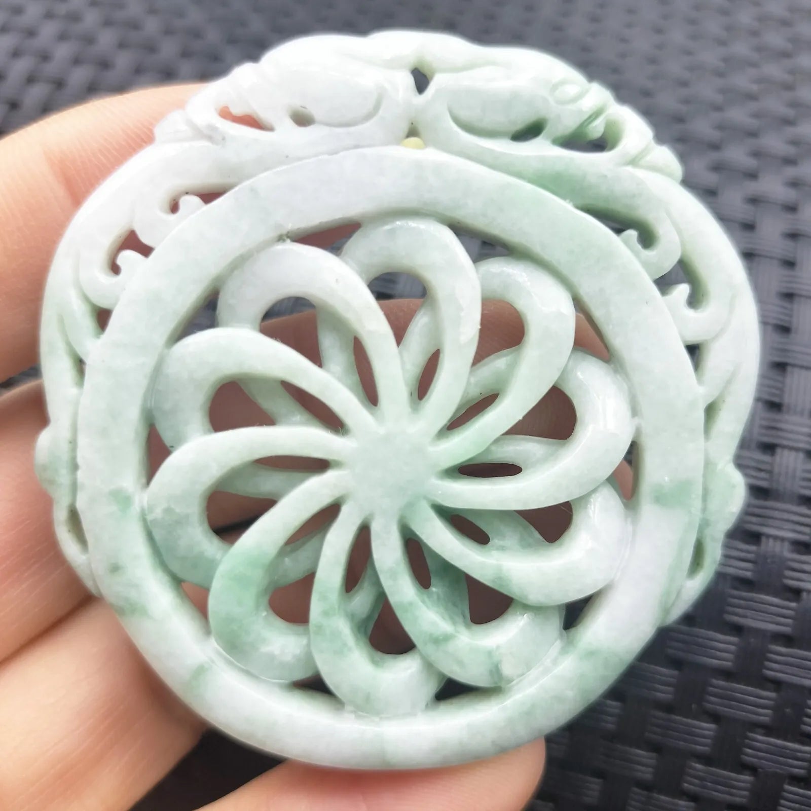 Certified Green Lavender Natural A Jadeite Dragon Pi Xiu Circle Knotted Pendant Necklace