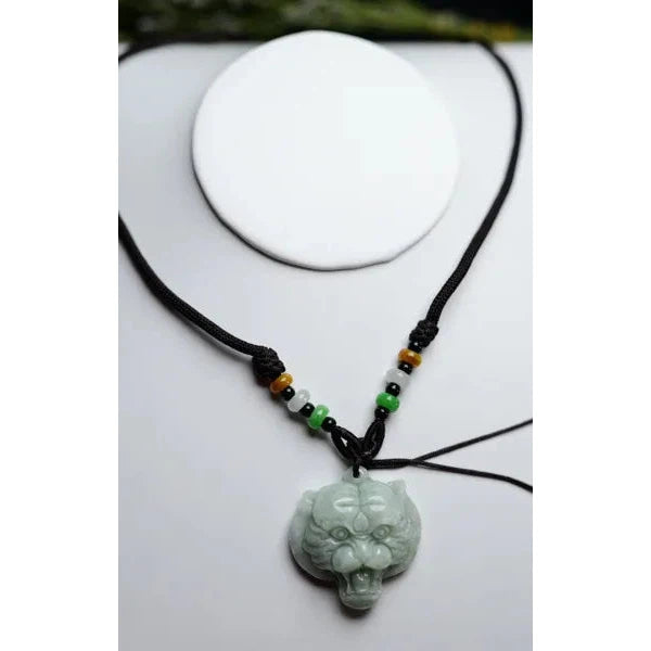 Certified Green Natural 100% A Jade Jadeite Pendant Tiger Head
