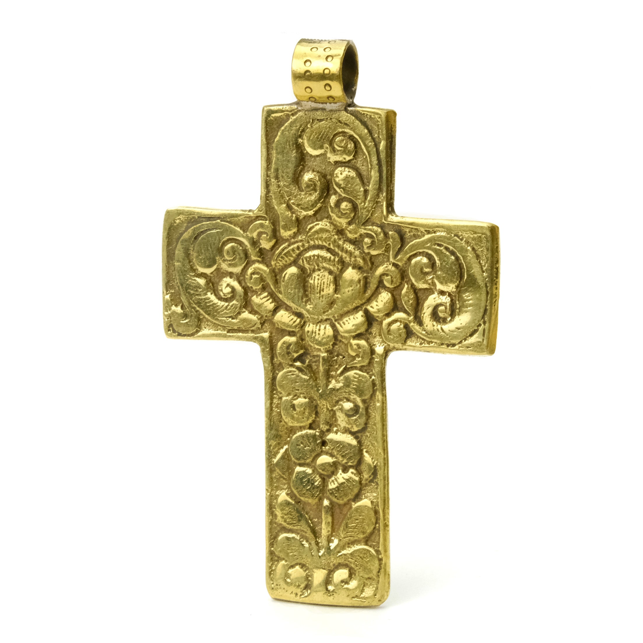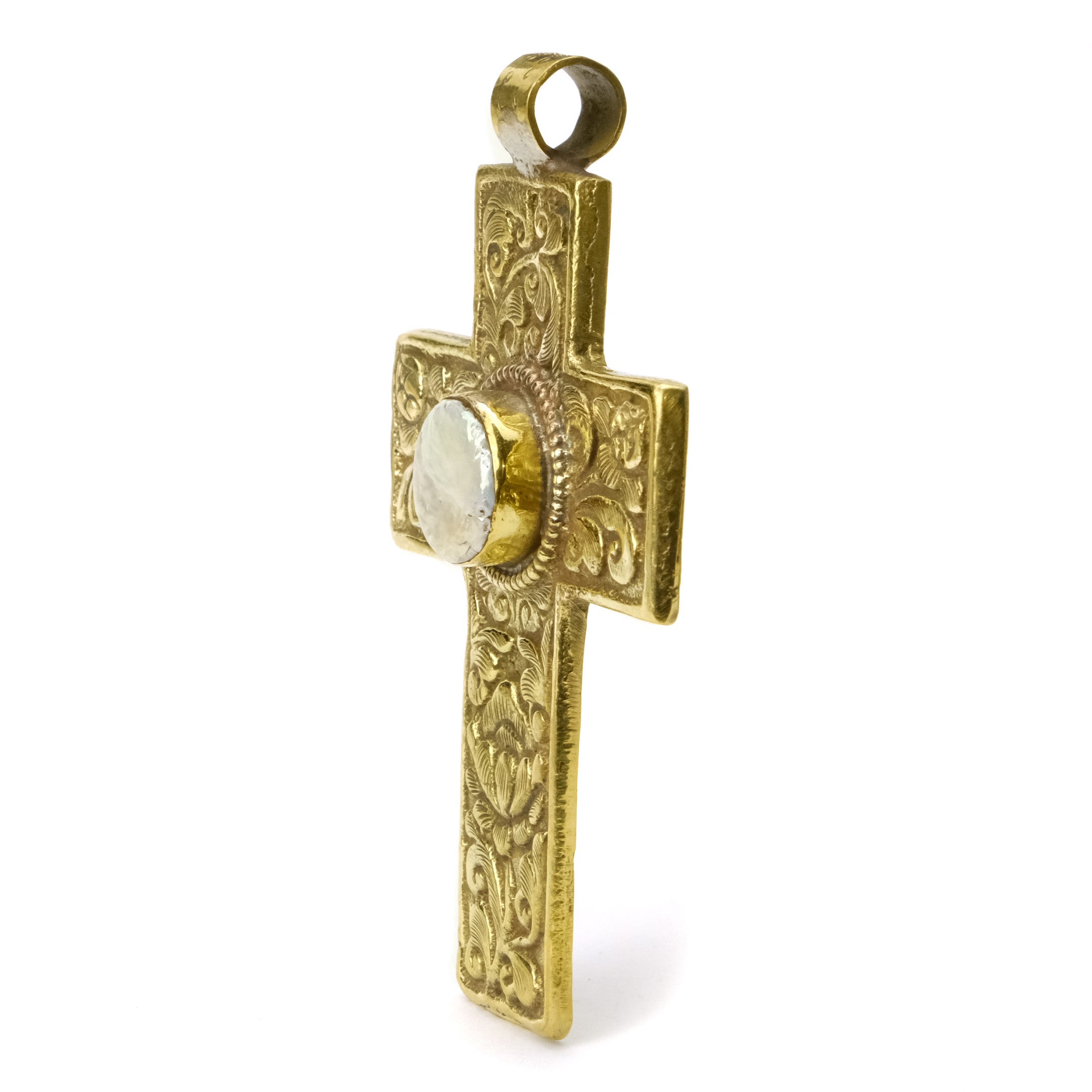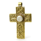 Cross with Inset Raw Pearl Coin in Gold Brass Frame # 57 -2