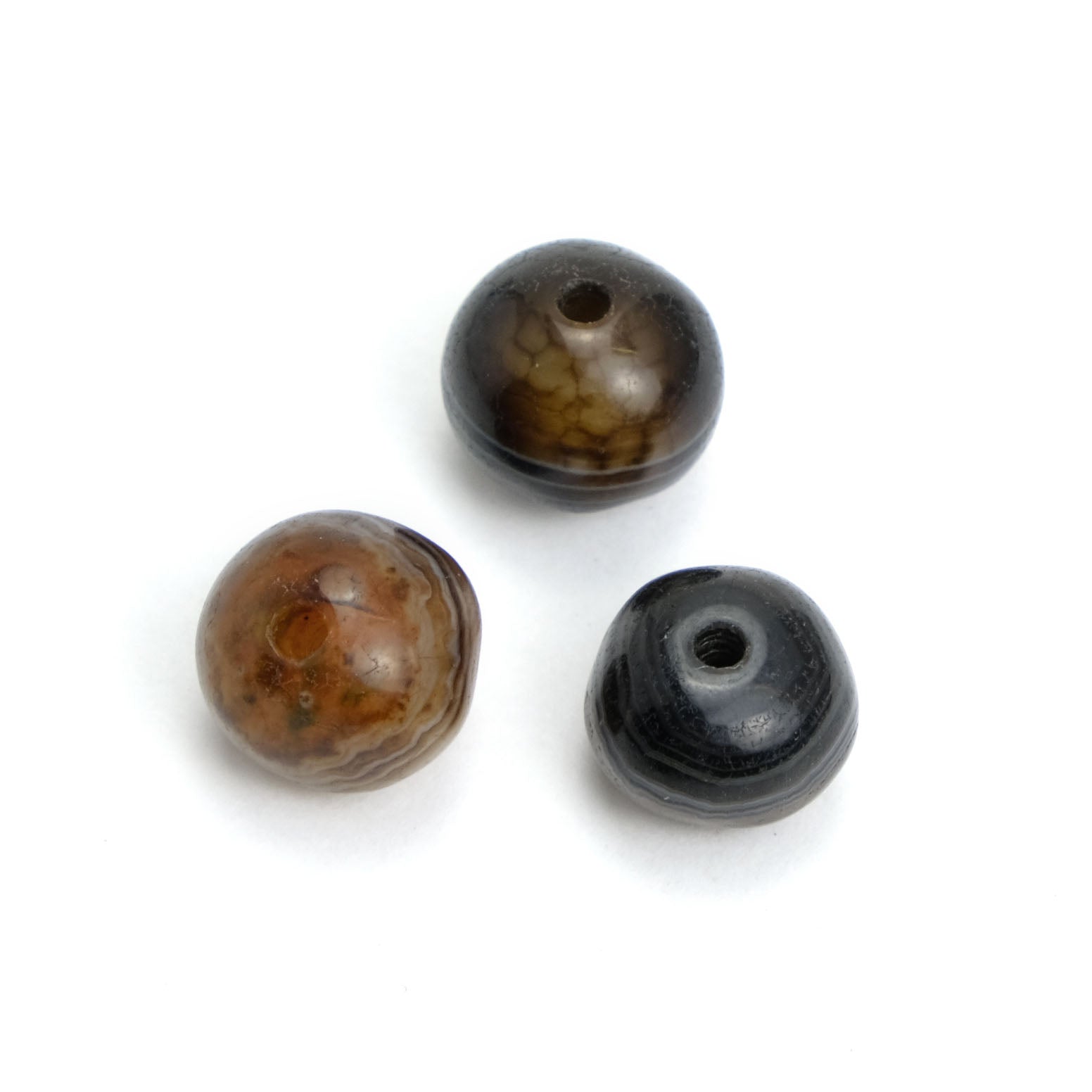 • Suleiman Agates, or Solomon’s Agates, are a highly revered bead throughout the Near East and Central Asia that has been shrouded in mystery for centuries. While some say the name comes from the secret location they were originally mined from, which only King Solomon knew, others say that they were once plain, unpatterned agates that only developed bands after being in the possession of the famous King himself and his fabled wisdom. They were said to impart to the possessor that same knowledge and power, as well as the ability to control djinn (genies).