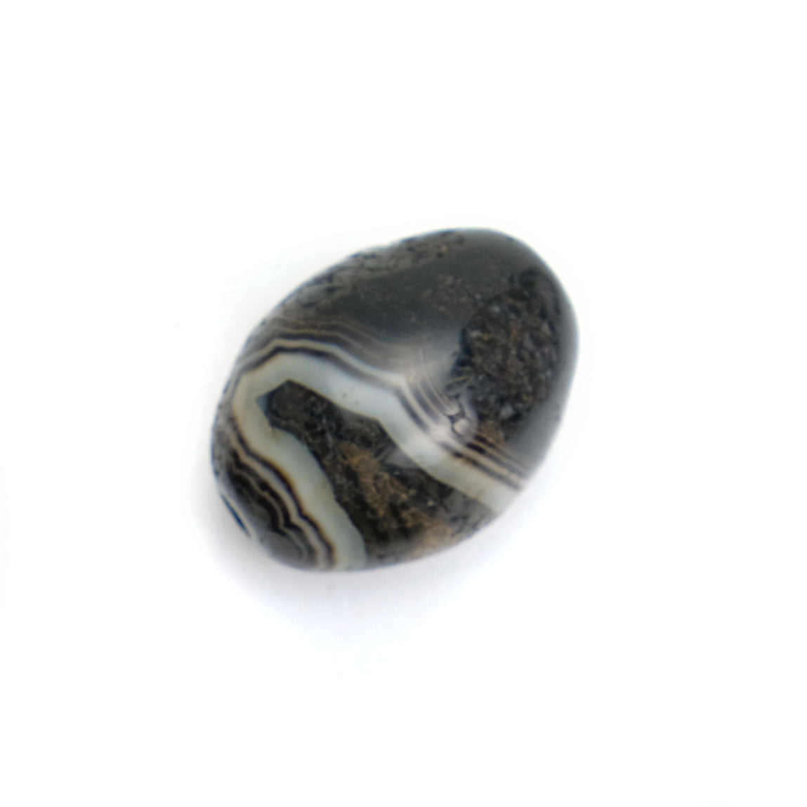 • Suleiman Agates, or Solomon’s Agates, are a highly revered bead throughout the Near East and Central Asia that has been shrouded in mystery for centuries. While some say the name comes from the secret location they were originally mined from, which only King Solomon knew, others say that they were once plain, unpatterned agates that only developed bands after being in the possession of the famous King himself and his fabled wisdom. They were said to impart to the possessor that same knowledge and power, as well as the ability to control djinn (genies).