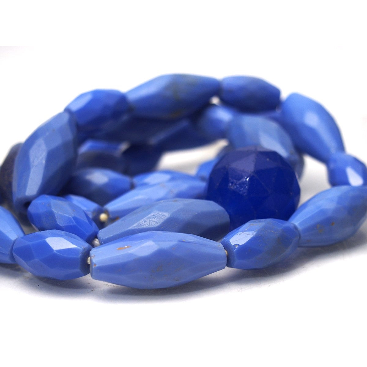 19th Century Bohemian "Vaseline" Diamond Shape Glass Bead Necklace, B