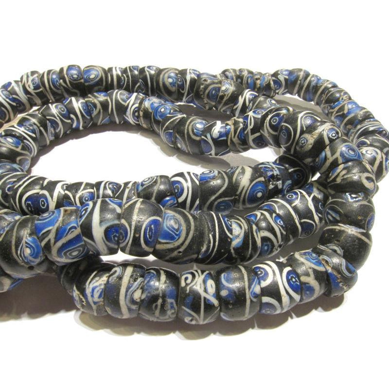 • 19th Century Venetian Extremely Rare Blue Hand Inlaid Lampwork Eye Beads.