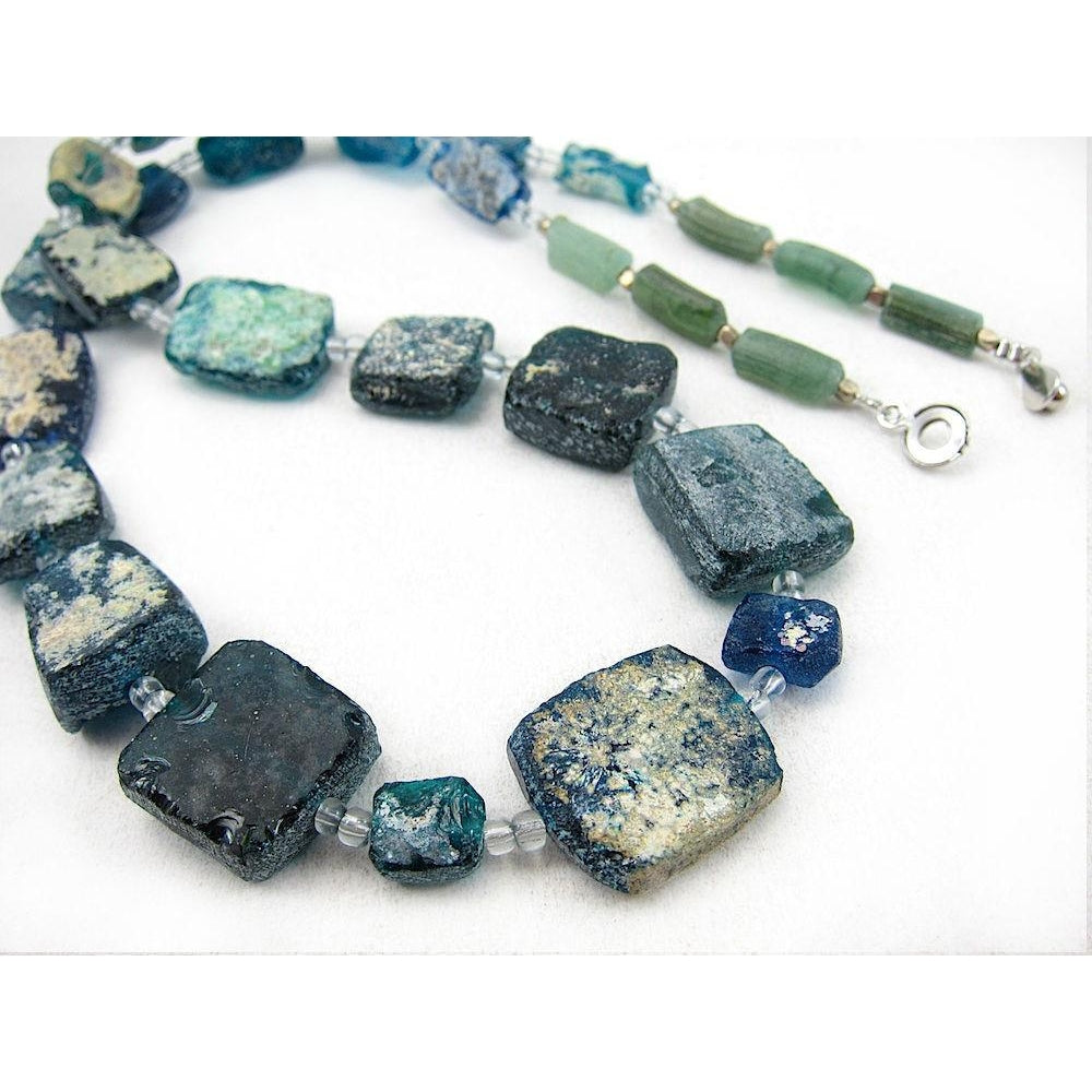 • Glass beads excavated from historical abandoned dump sites in Afghanistan are re-ground and drilled fragments of ancient jewelry, pottery shards, ruined vessels and amphora used on trade routes, ancient perfume vials and fine glass bangles that adorned the wrists of Roman and Persian ladies from previous centuries.