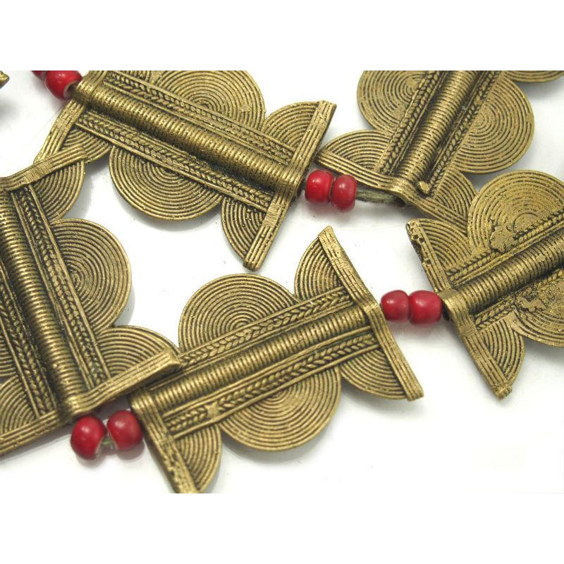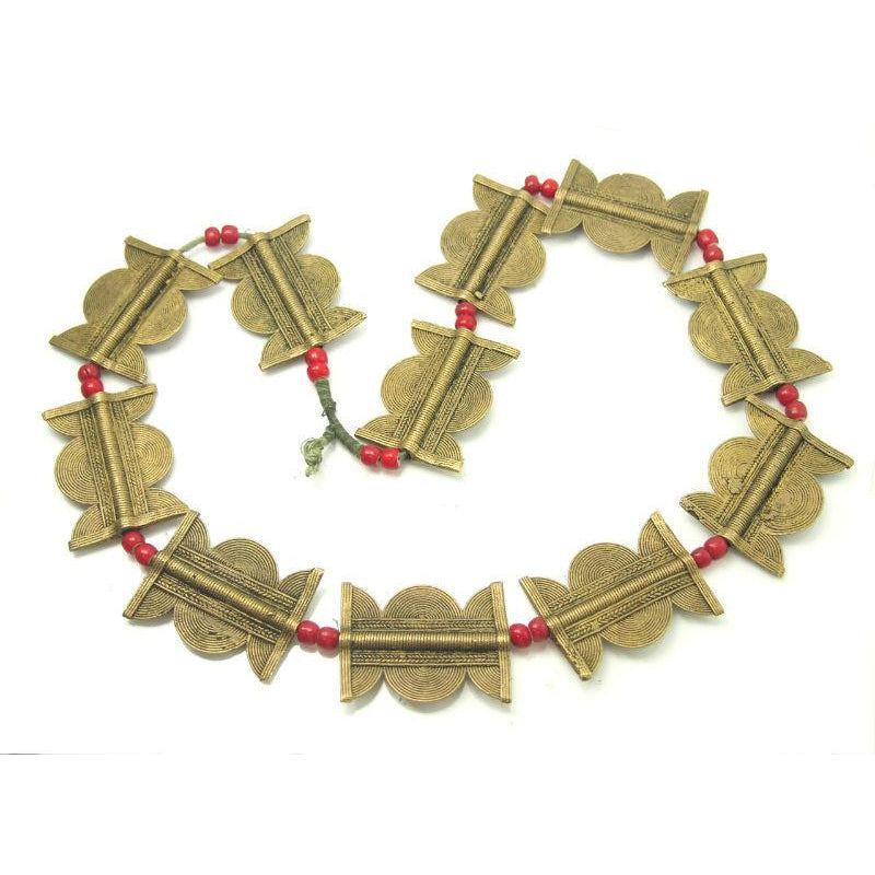 Baoule Authentic Hand Cast Brass Beads Necklace Medium with Hourglass Shapes with Glass Bead Spacers