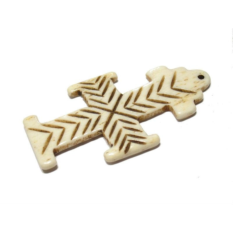 Ethiopian Coptic Style Cross Hand Carved Cow Bone Pendant 2