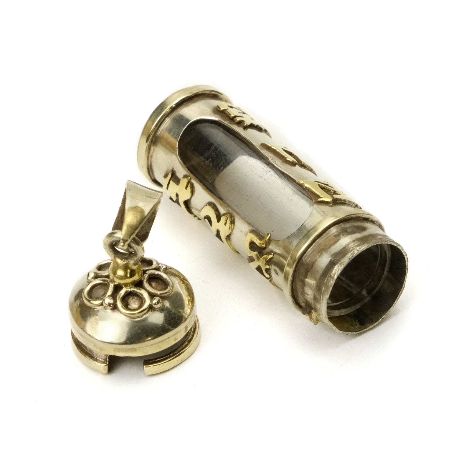Gau Window Locket Cylinder Ohm Mani Padme Ohm Mantra Small Size # 69