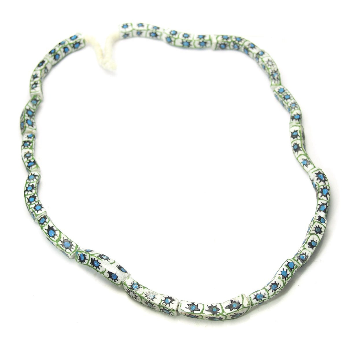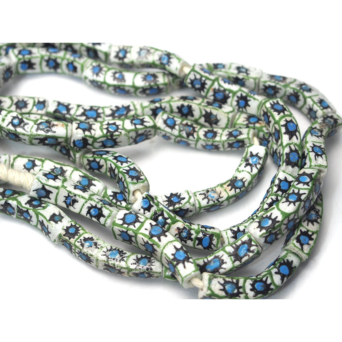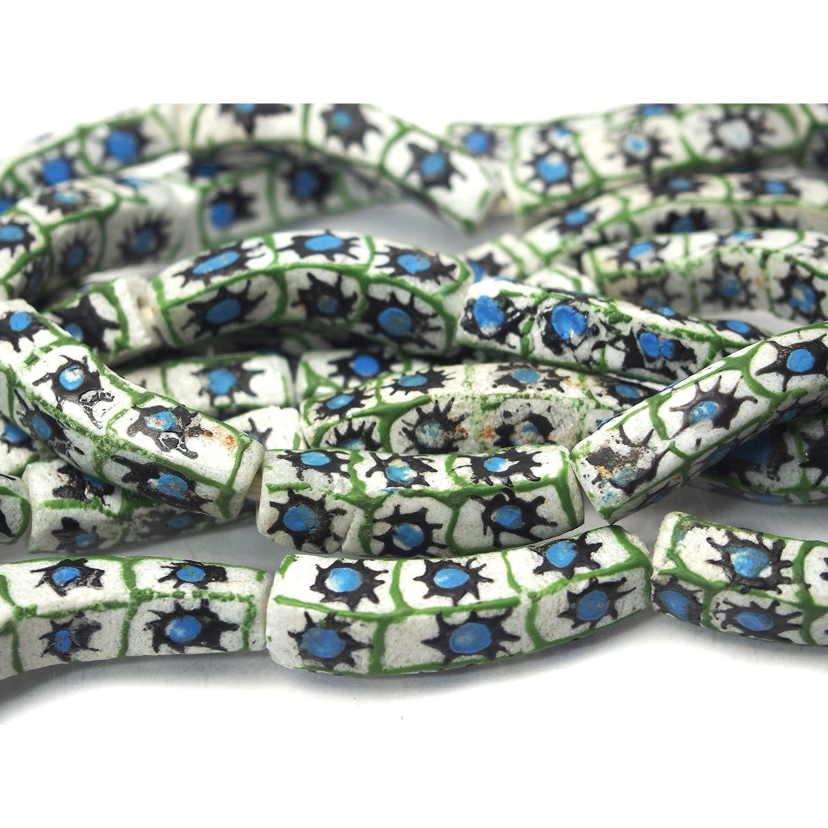 Ghana Powder Glass Delft Blue Style Elbow Millefiori Beads