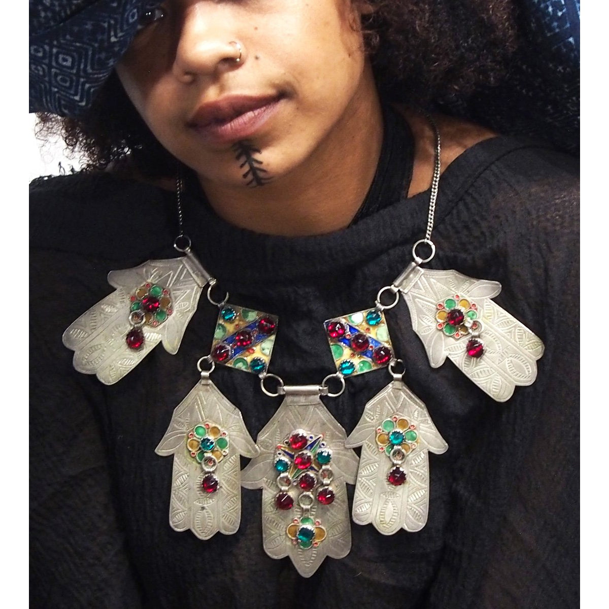 Hamsa Heirloom Grande Necklace From Tiznit, Morocco