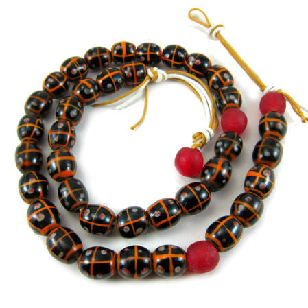 Hand Wound/Hand Inlaid Java Glass Bead Necklace/Strand