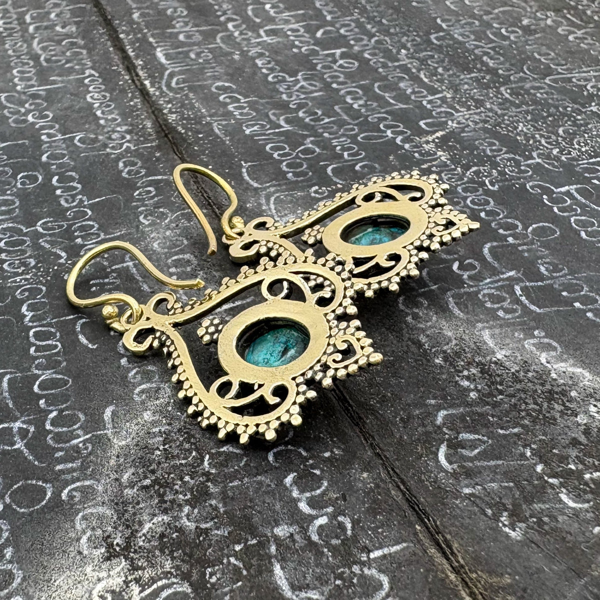 • Measurements: stone: 9mm x 7mm ; 22mm x 32mm ; dangles 1.25”