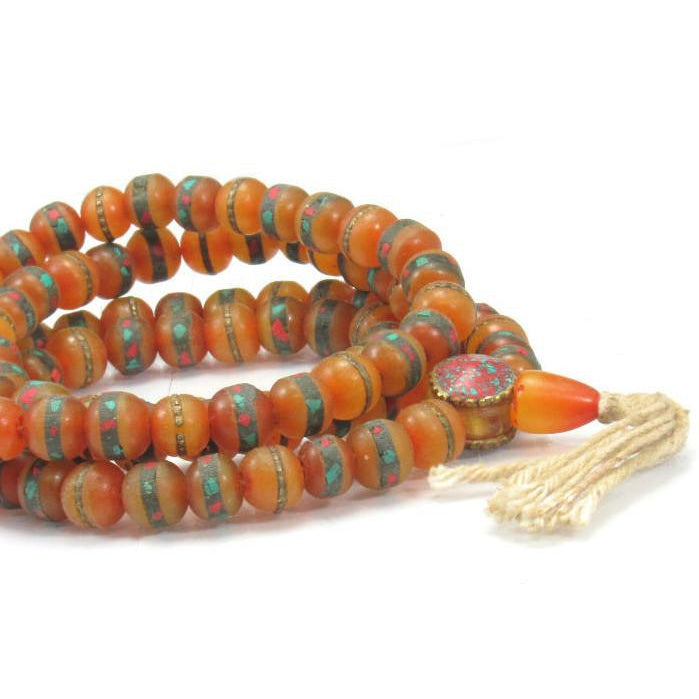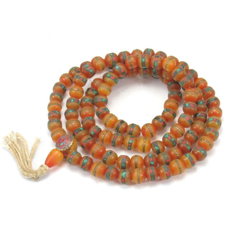 Inlaid Amber Resin Mala 9mm