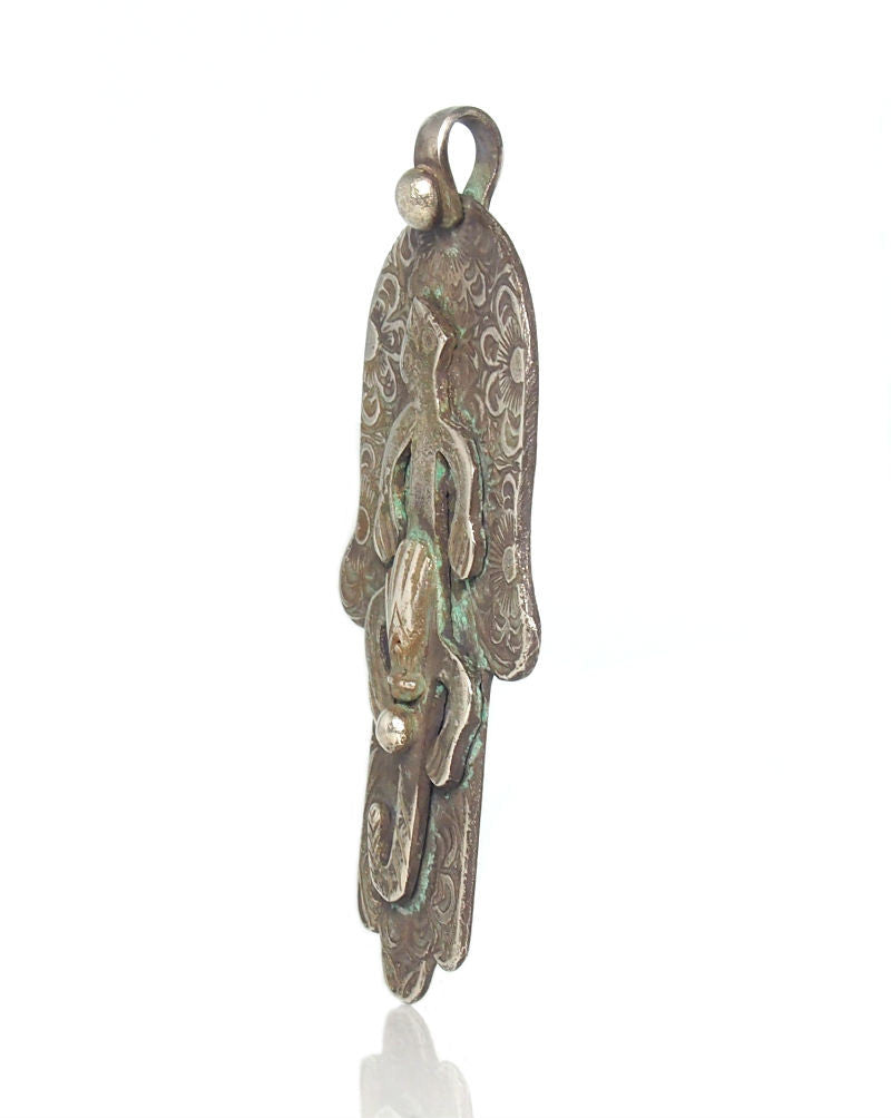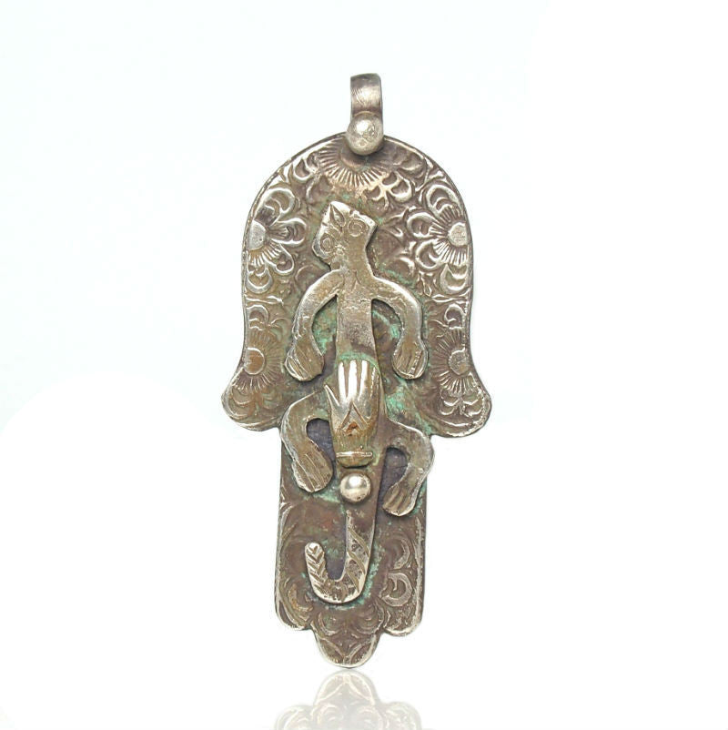 Moroccan Hamsa Pendant w/Salamander and Hand Overlay