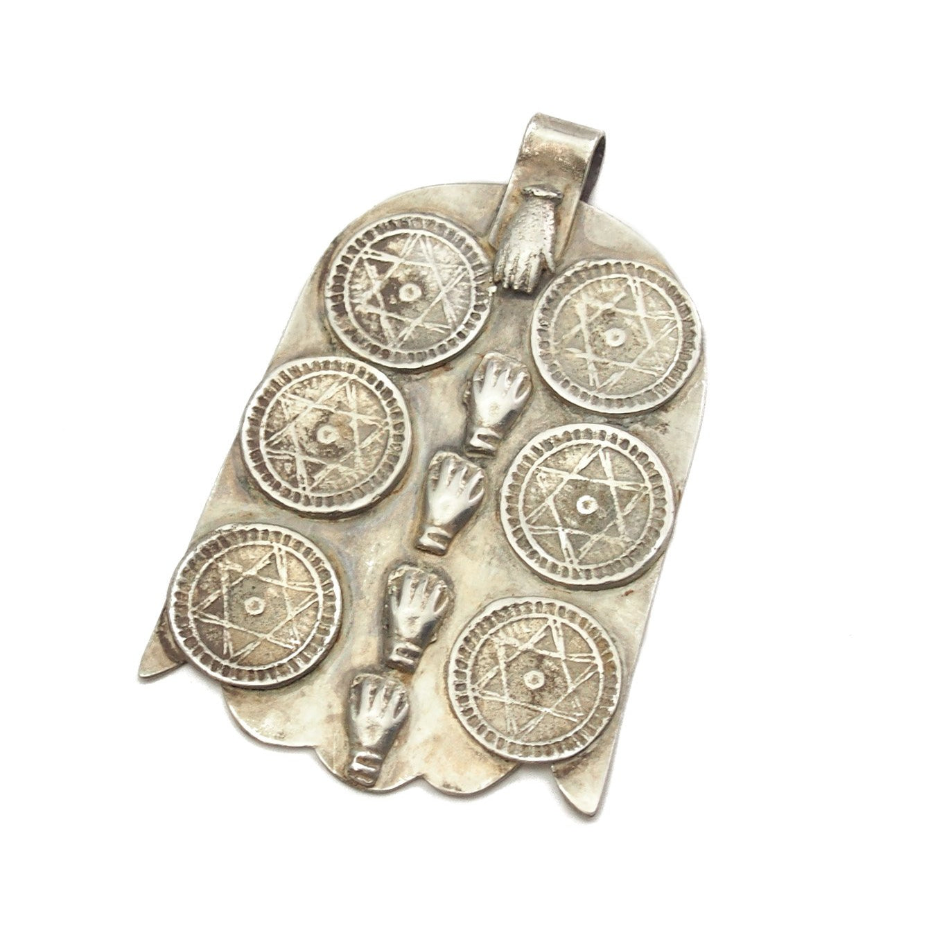 Moroccan Hand of Fatima Amulet Pendant with Seals of Solomon