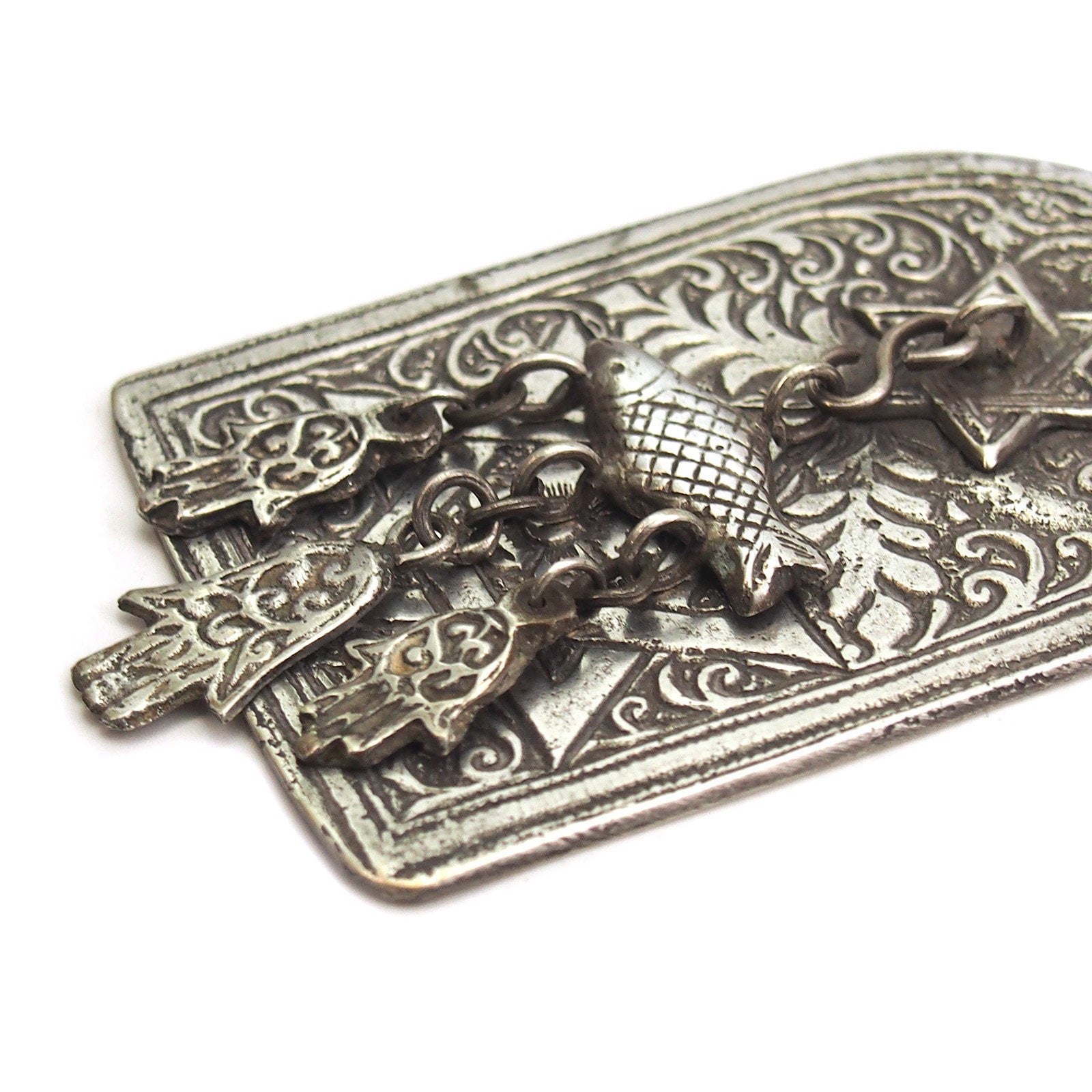 Moroccan Judaica Fish Amulet Hamsa Pendant from Essaouira circa 1950 -1