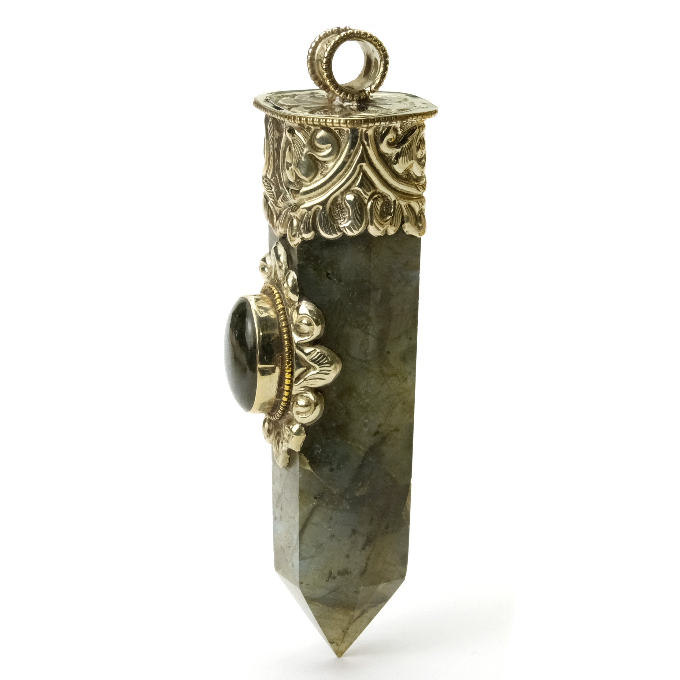 Labradorite Obelisk Pendant Large with Fine Polished Labradorite Cabochon # 79