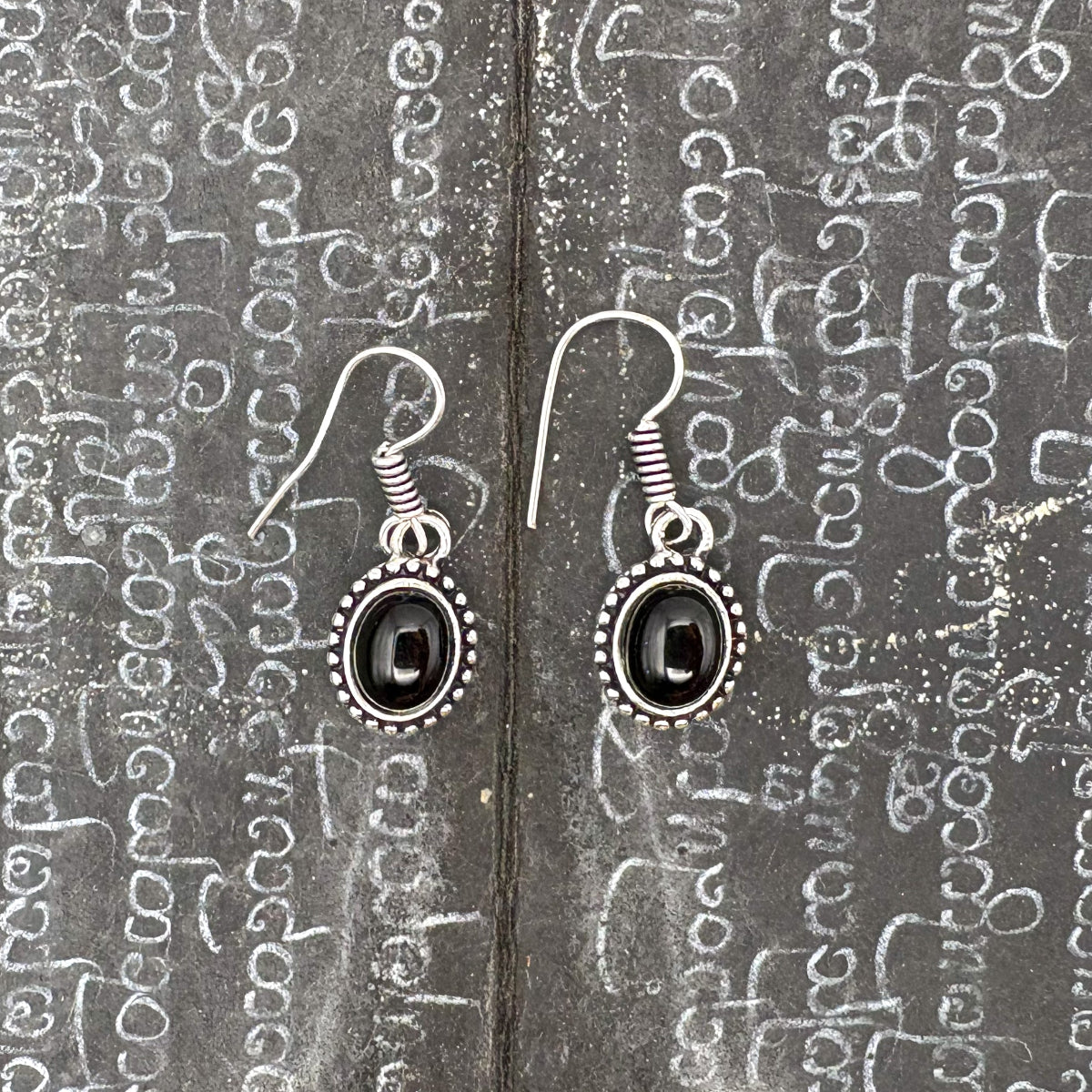 Onyx Oval Dots Brass Earrings