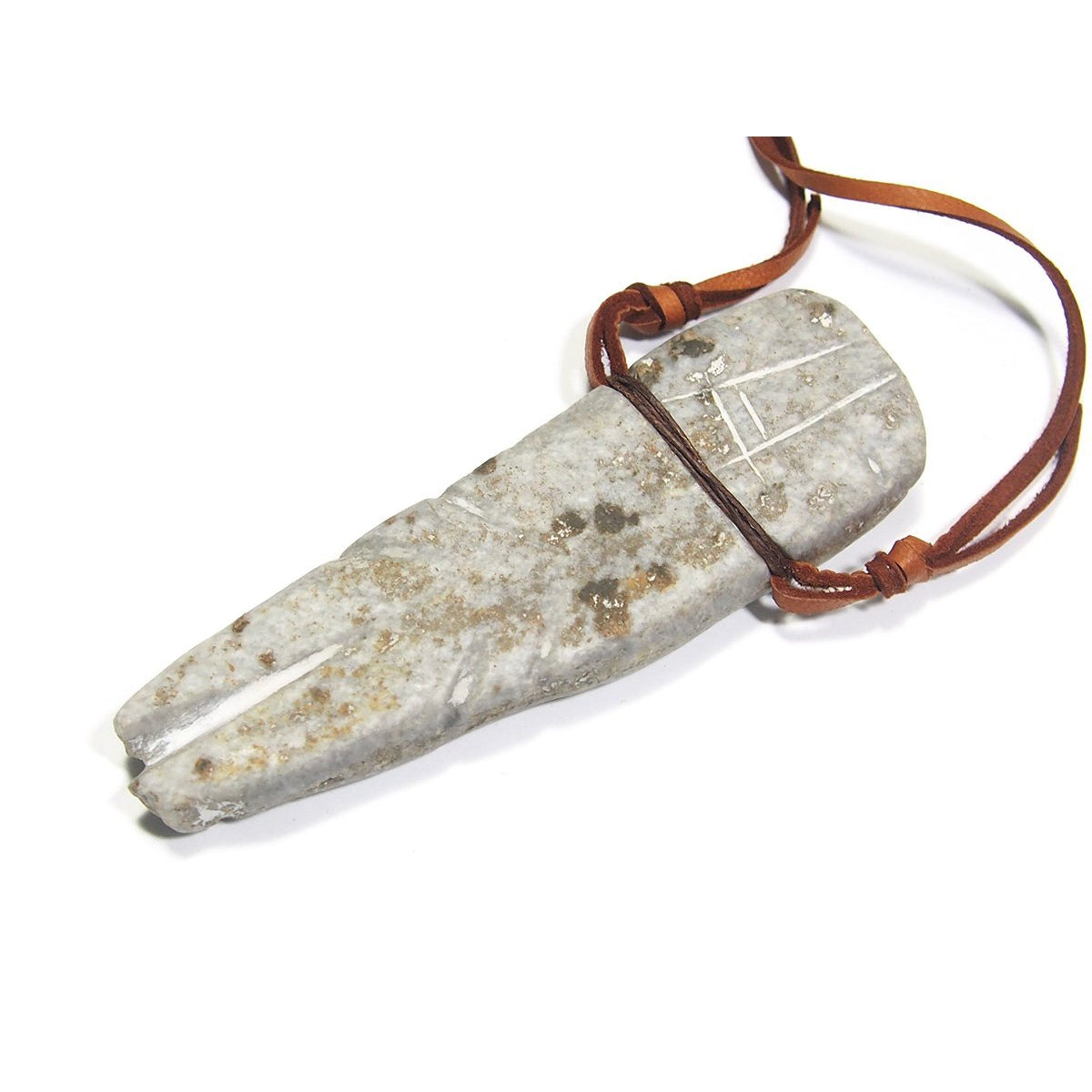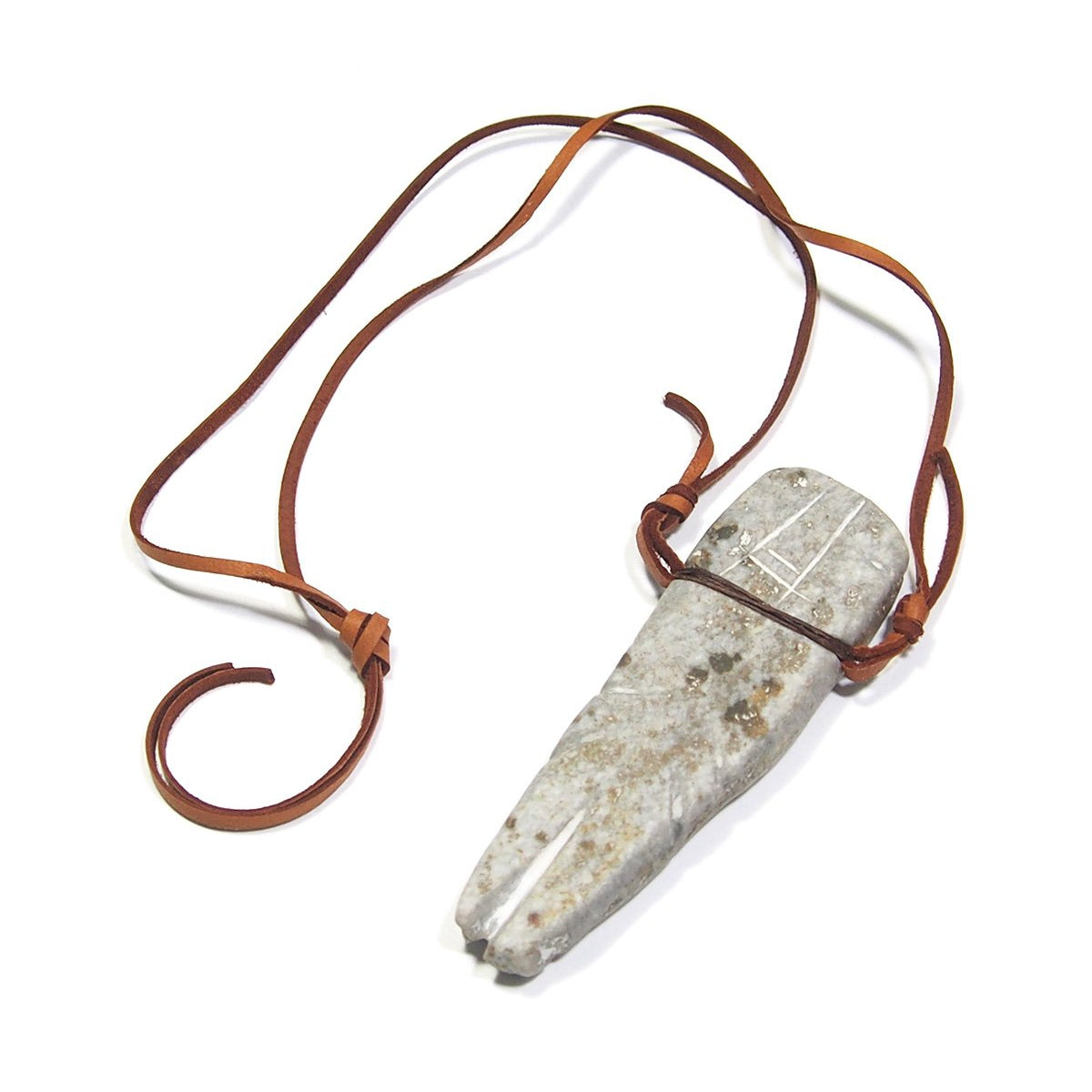 Pre-Columbian Axe God Figure in Schist Stone Necklace, A