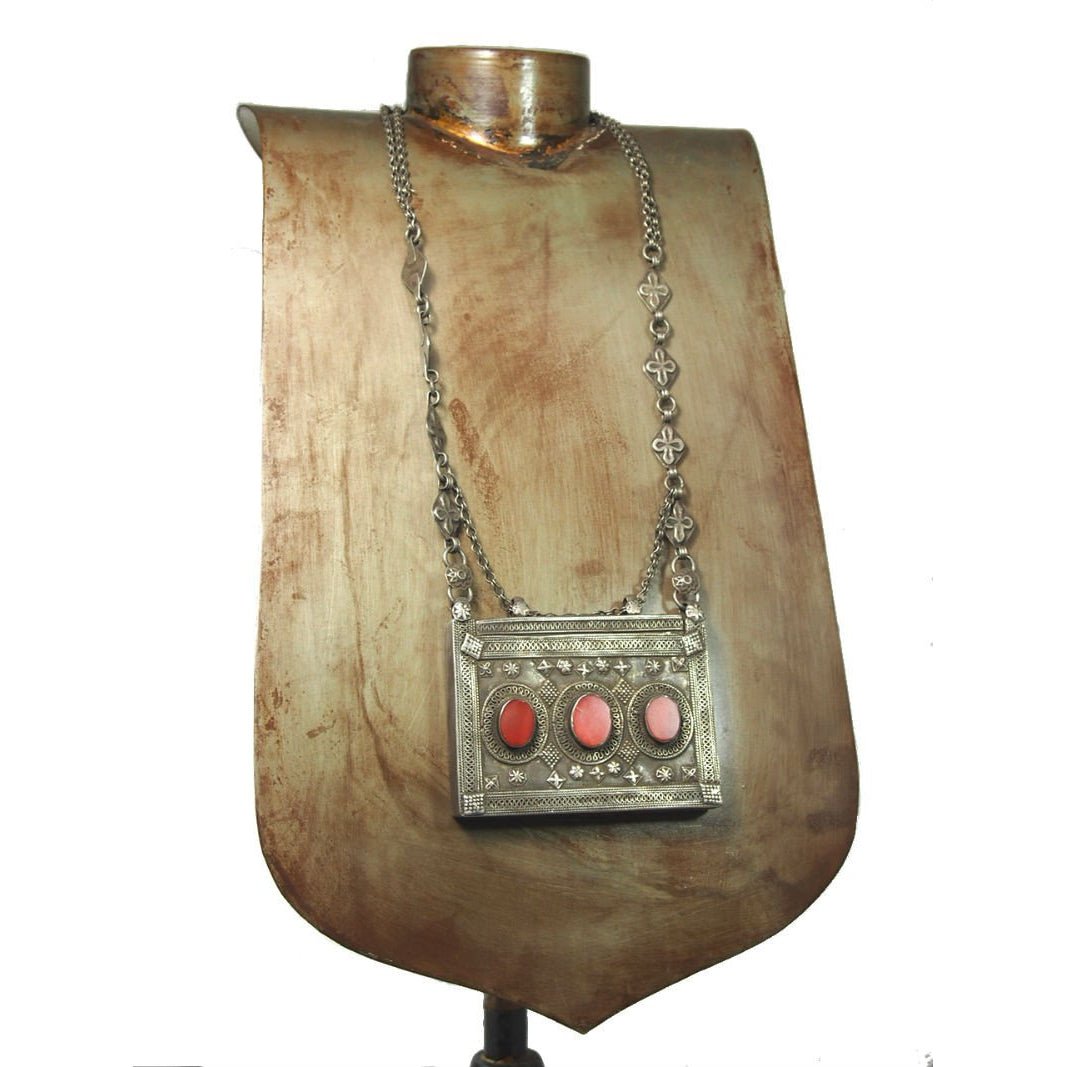 Turkmen Amulet Case Mountain Shape Antique Necklace -21