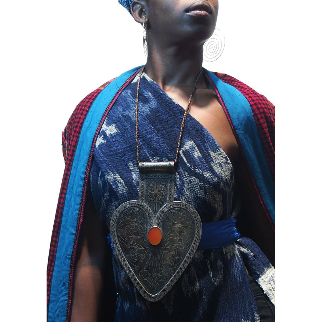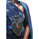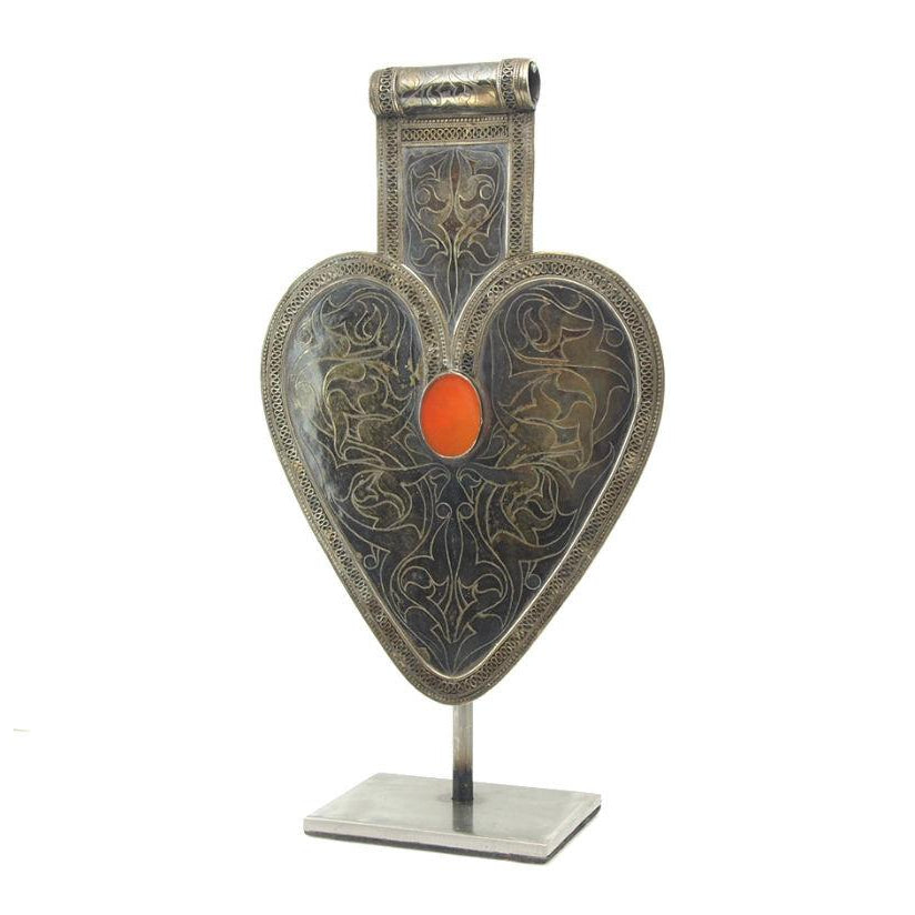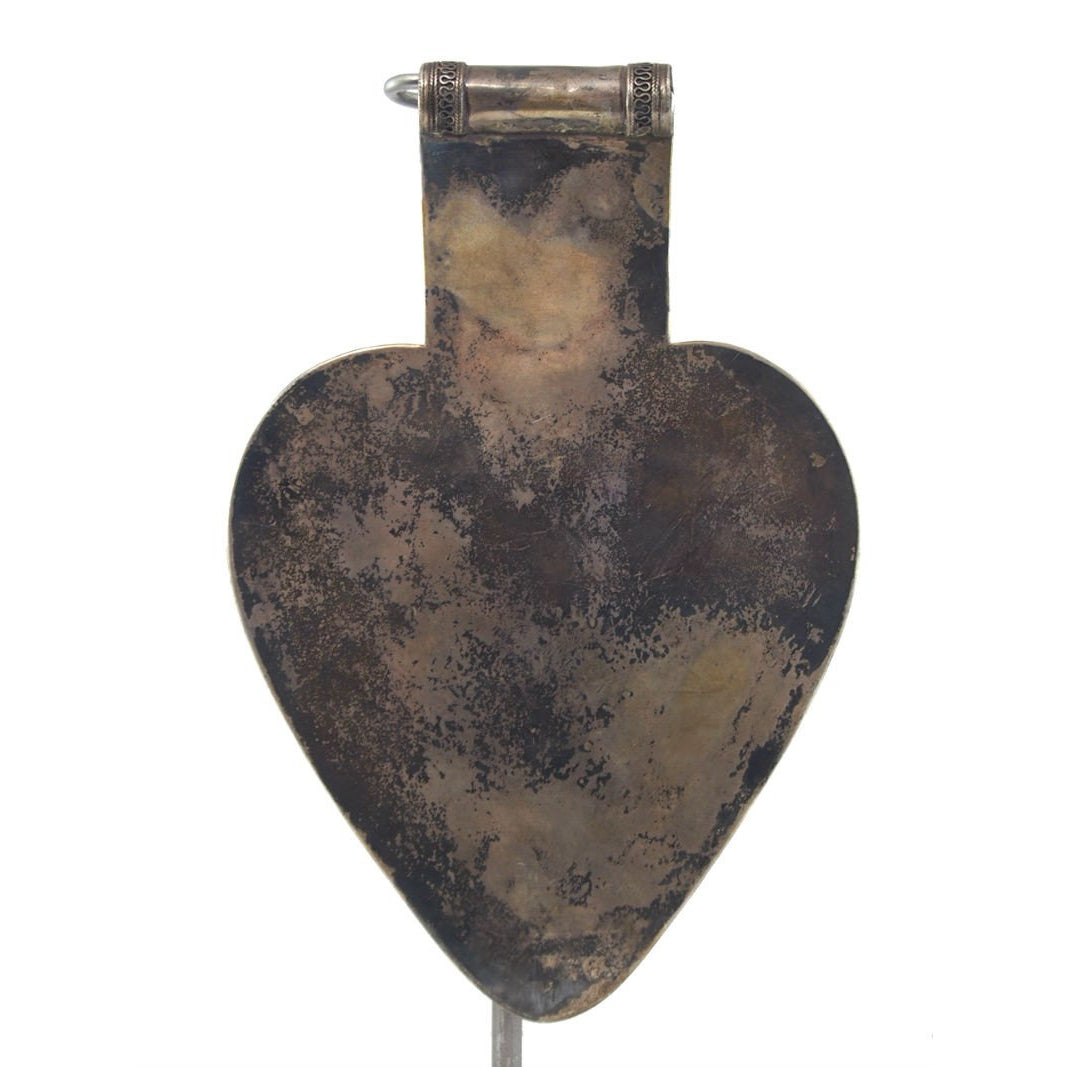 Turkmen "Black Silver" Floral Pattern Asyk Cordiform Heart Shape Antique Pendant-07