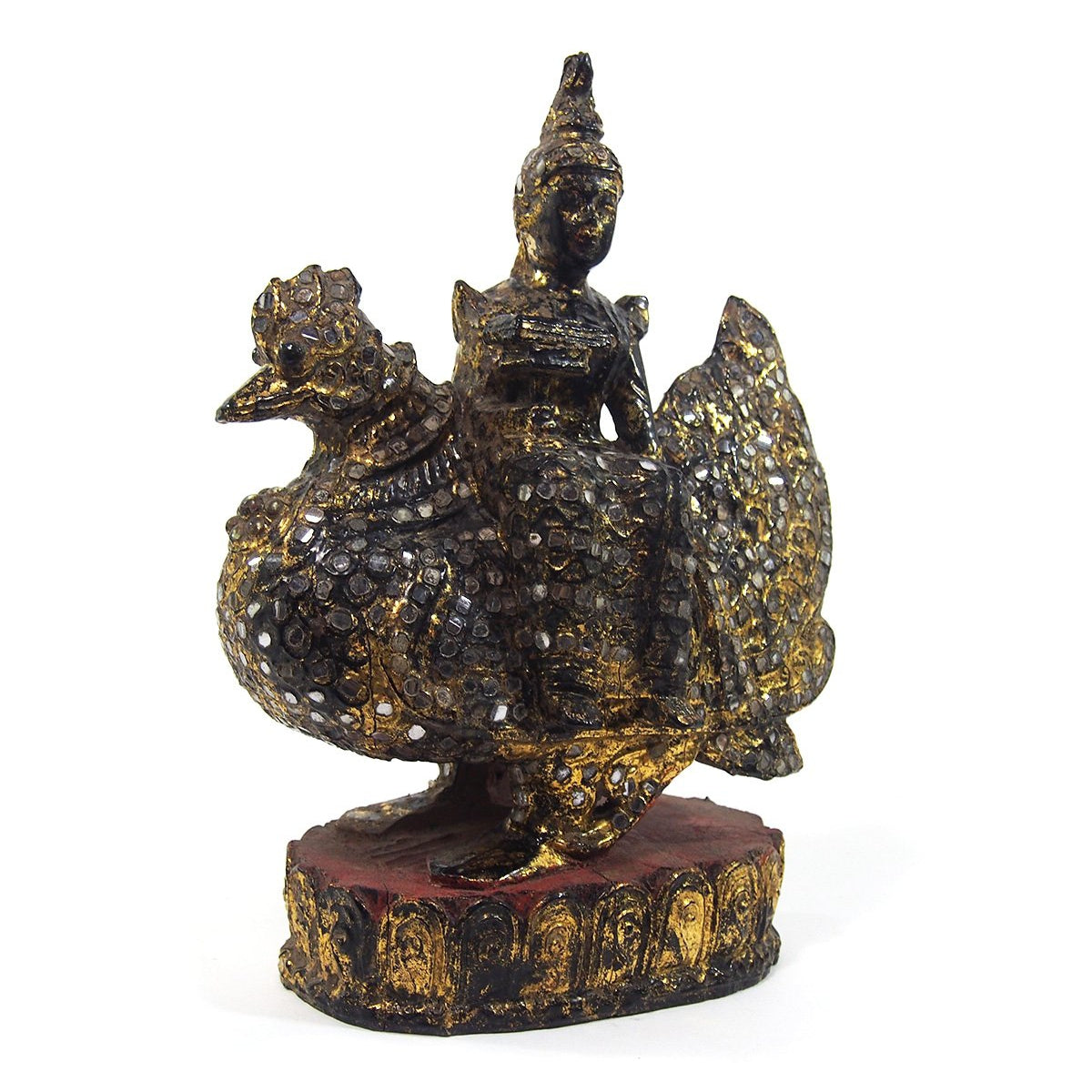 Saraswati Black Lacquer Golden Leaf Glass Mosaic Large Figure from Burma known as Thurathadi Dewi