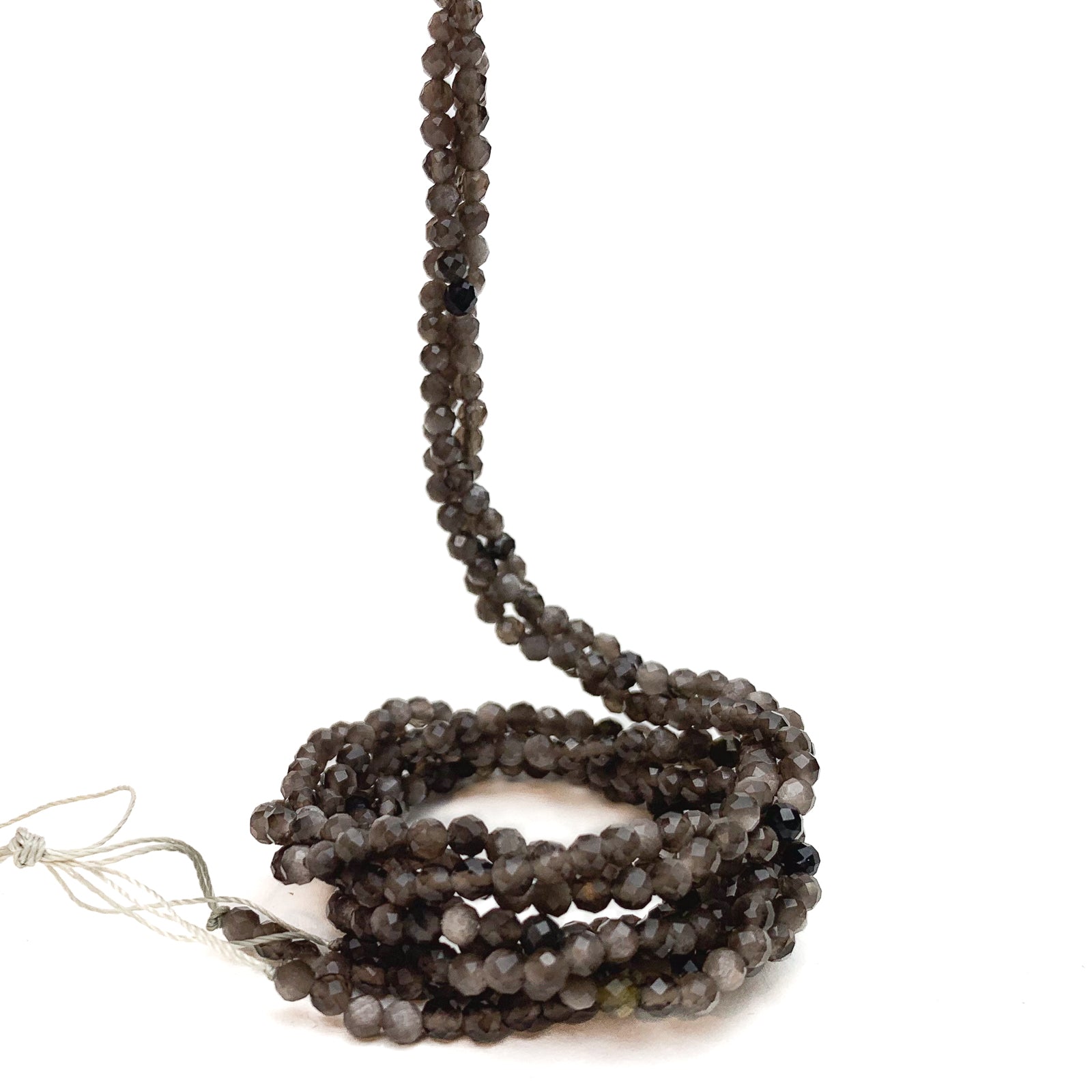 Grey Moonstone 3mm Faceted Rounds Bead Strand