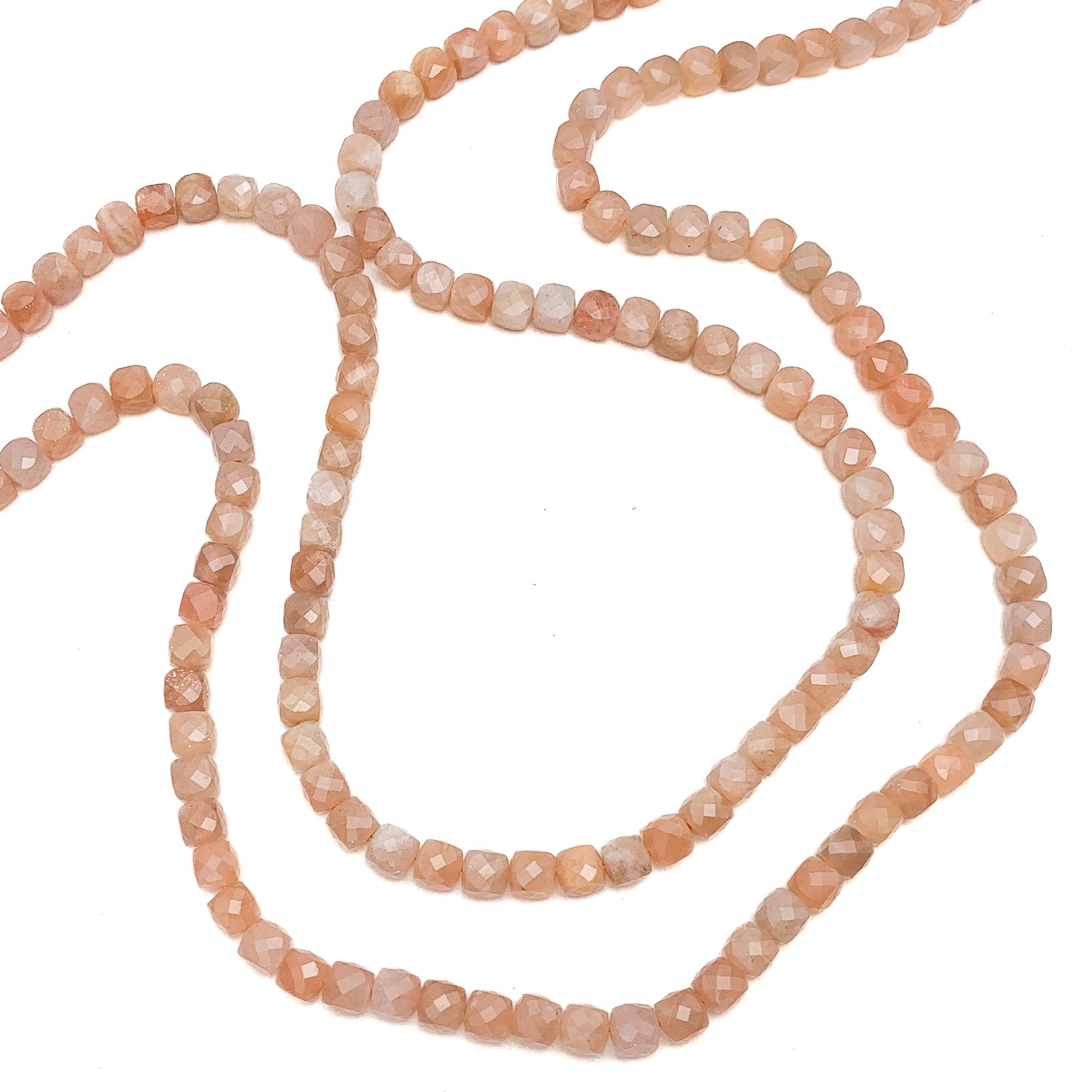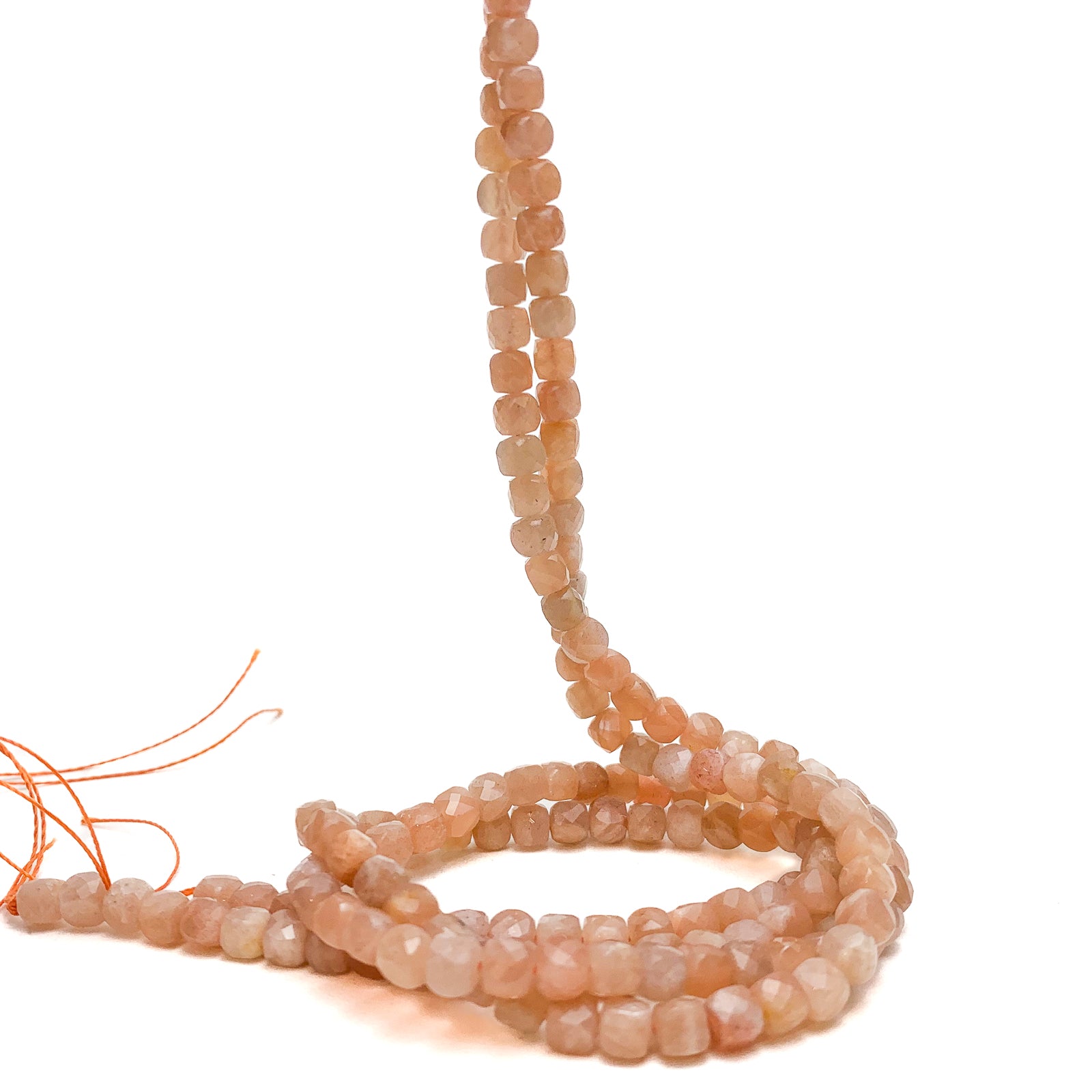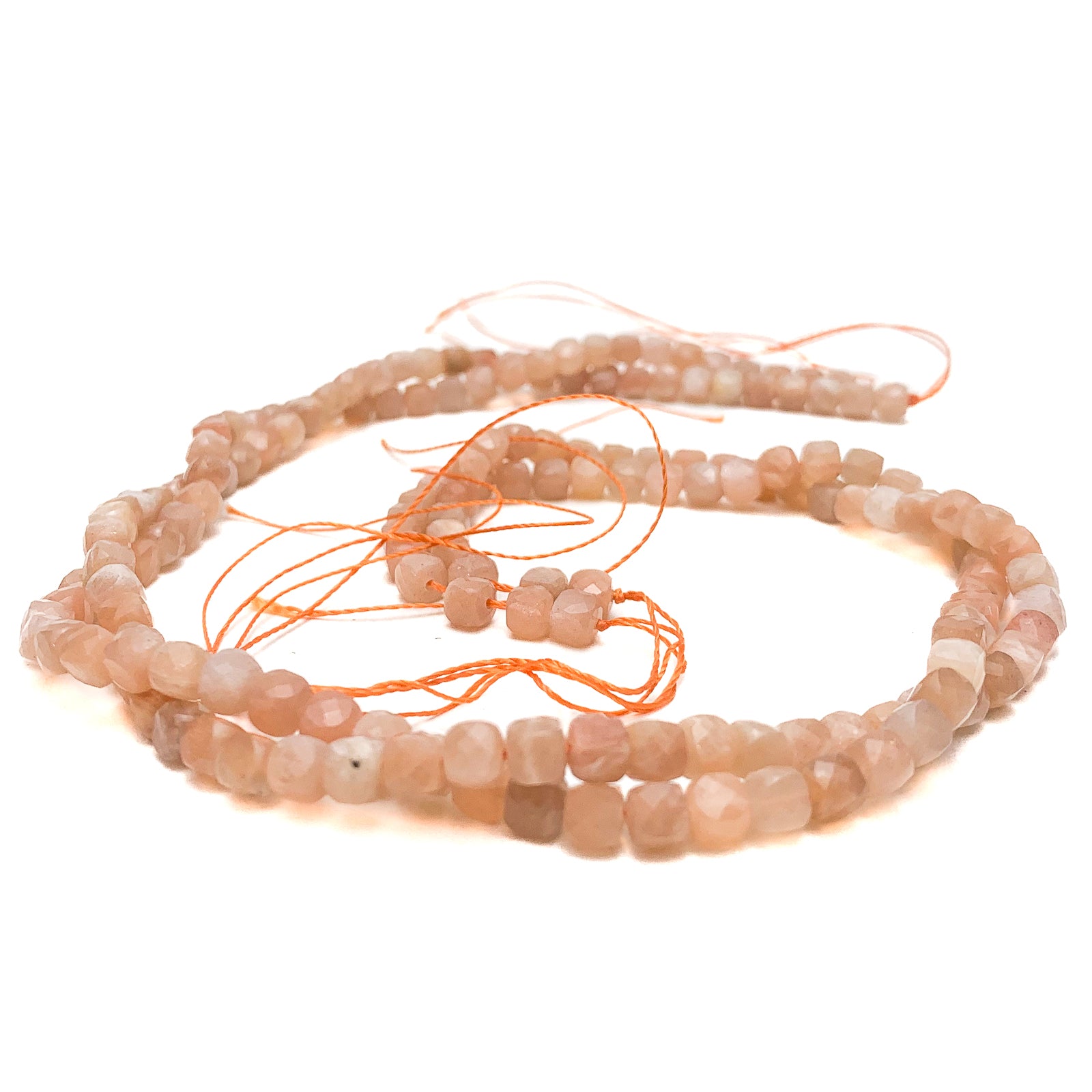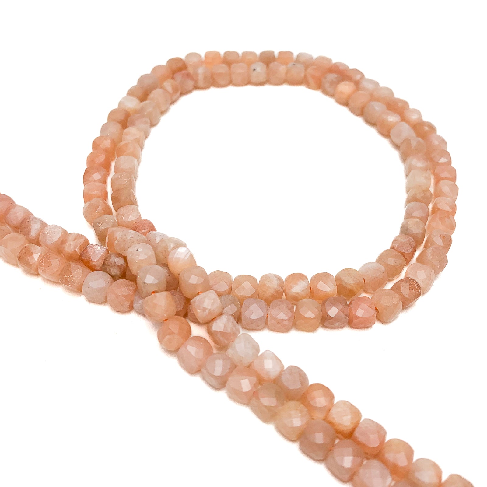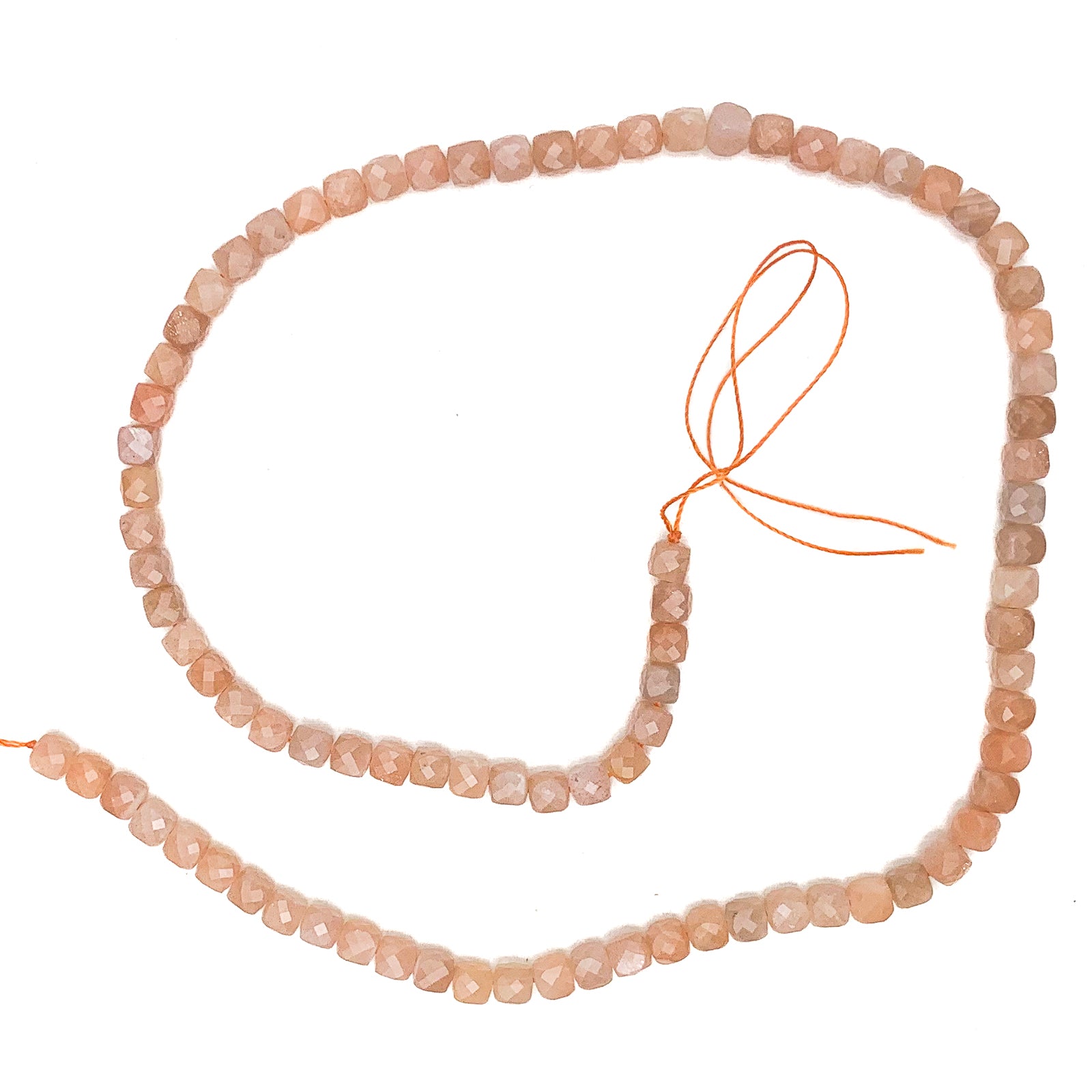 Peach Moonstone 4.5mm Faceted Cubes Bead Strand