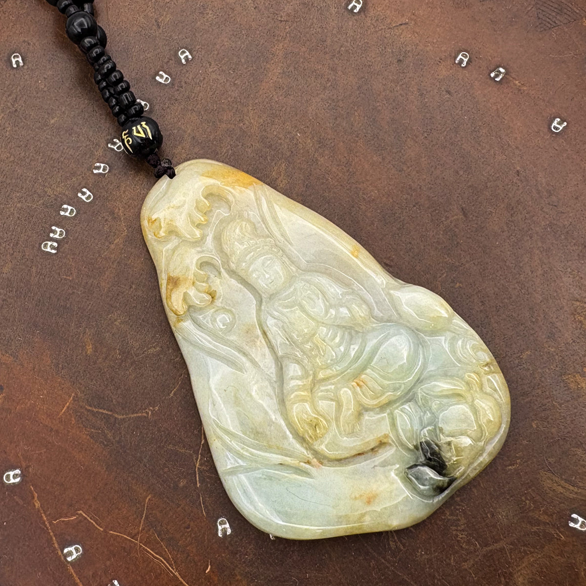 Certified Grade A Brown Green Natural Jadeite Jade Pendant Kwan-Yin Necklace