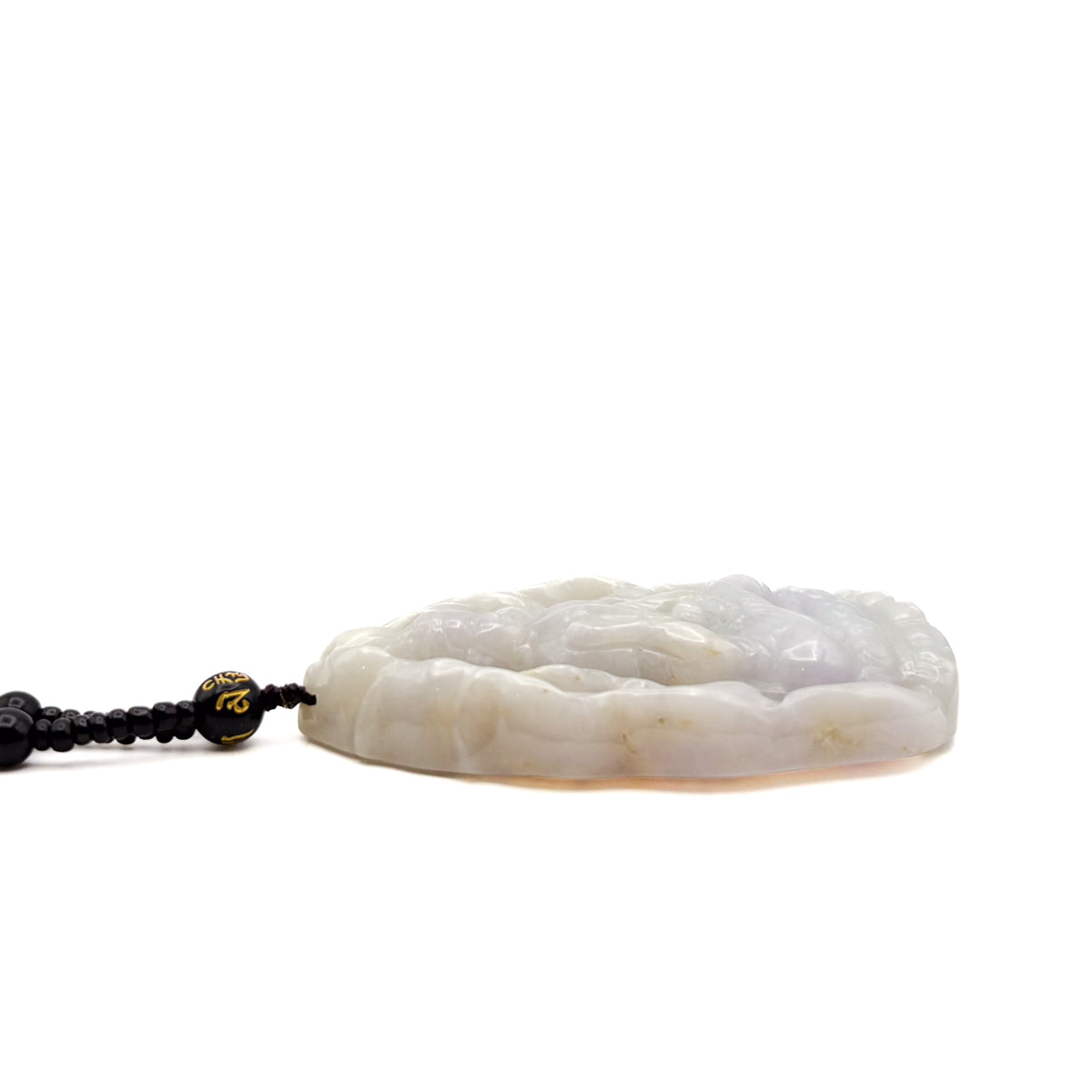 Certified Lavender Natural A Jadeite Carved Guanyin Kwan Yin God Leopard Pendant