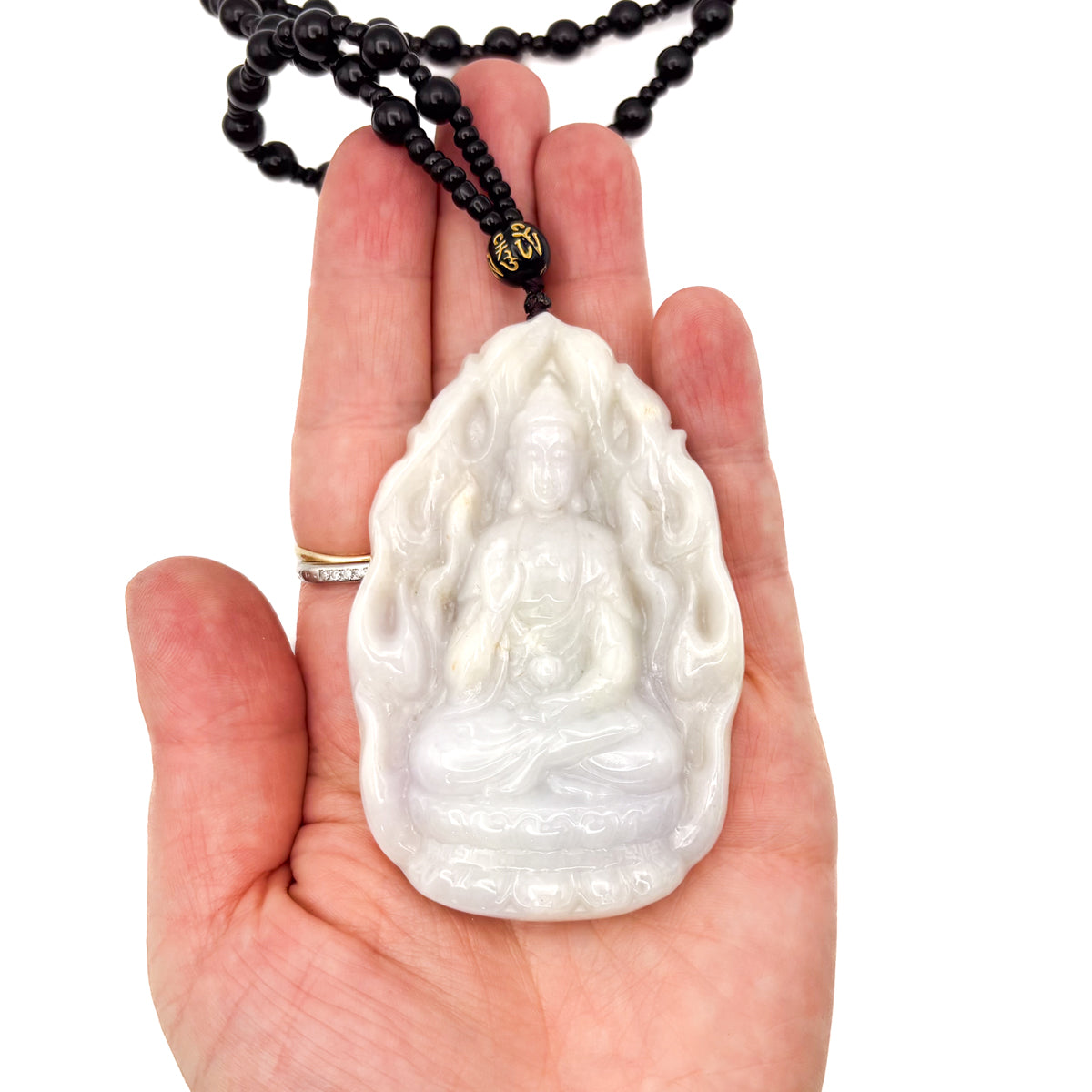 Certified Natural Type A Icy Jadeite Jade Lotus Kwan-Yin Big Pendant Necklace