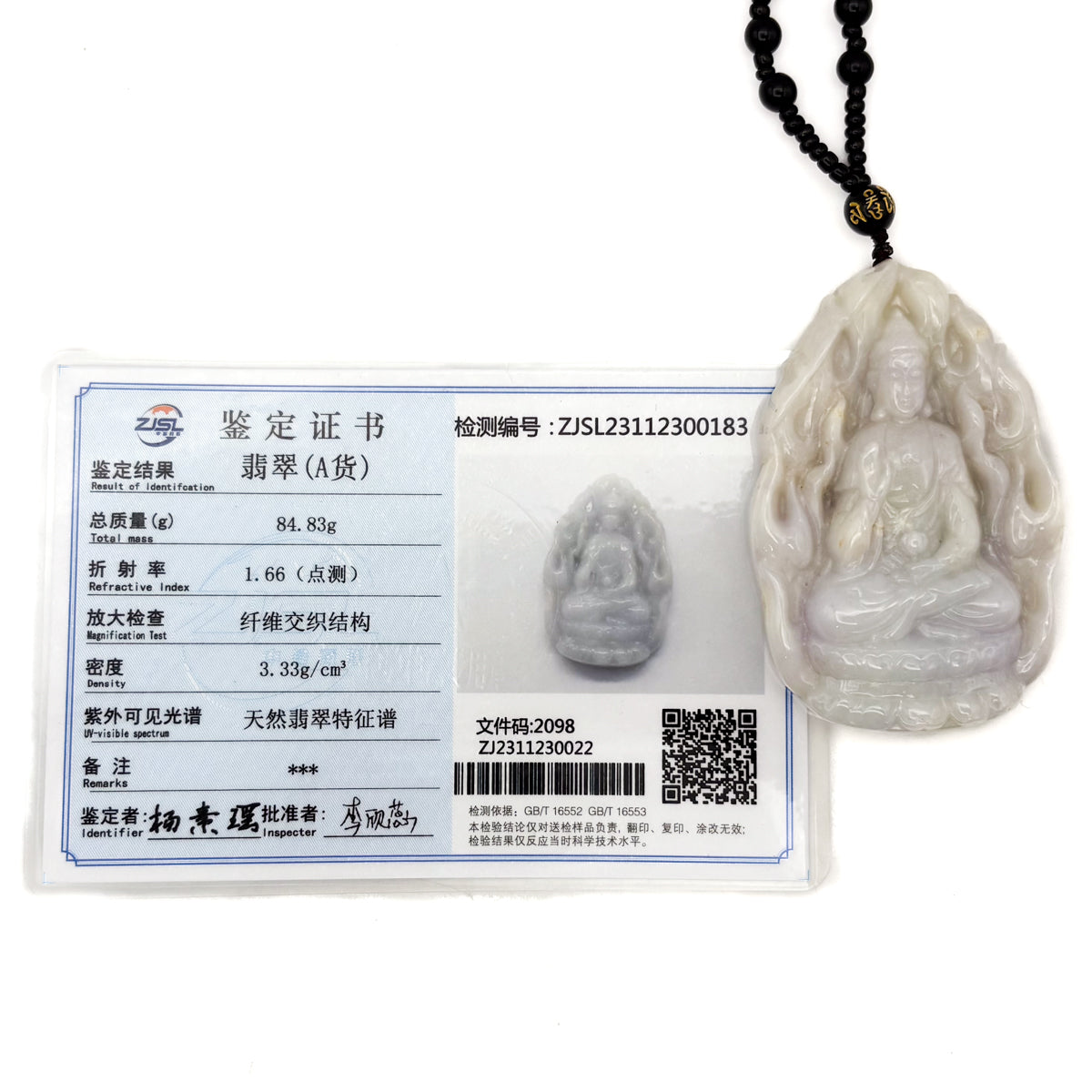 Certified Natural Type A Jadeite Jade Kwan-Yin Pendant Necklace