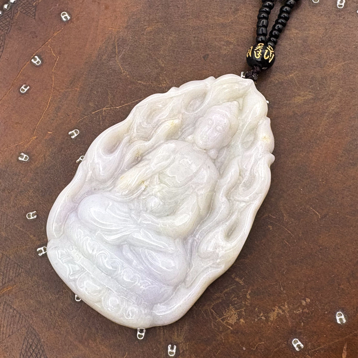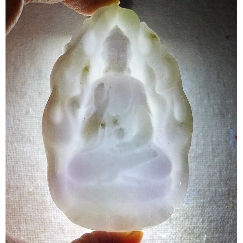 Certified Natural Type A Lavender Jadeite Jade Big Kwan-Yin Pendant