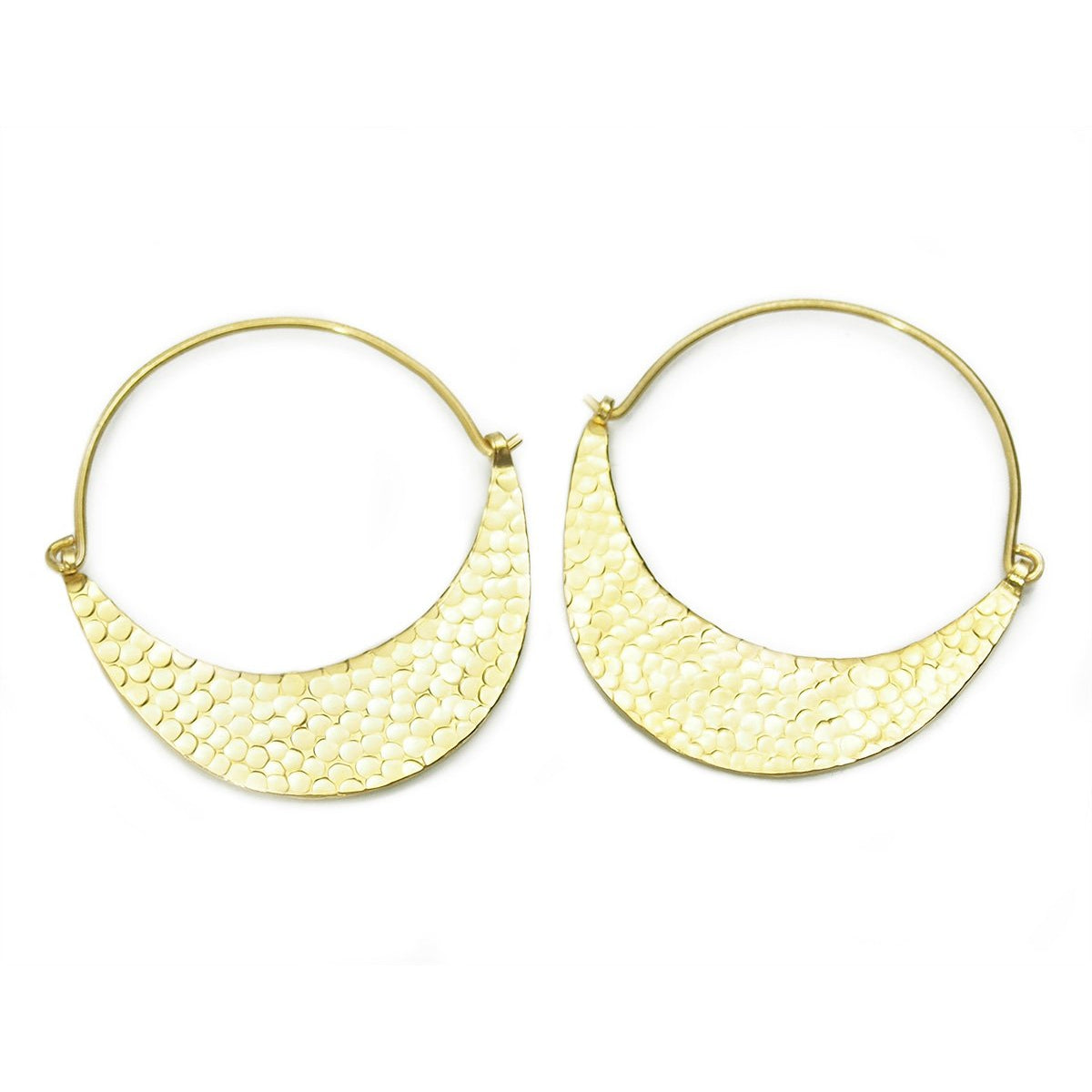 Gold Vermeil over Sterling Silver Hand Hammered Flat Half Moon Hoop Earrings