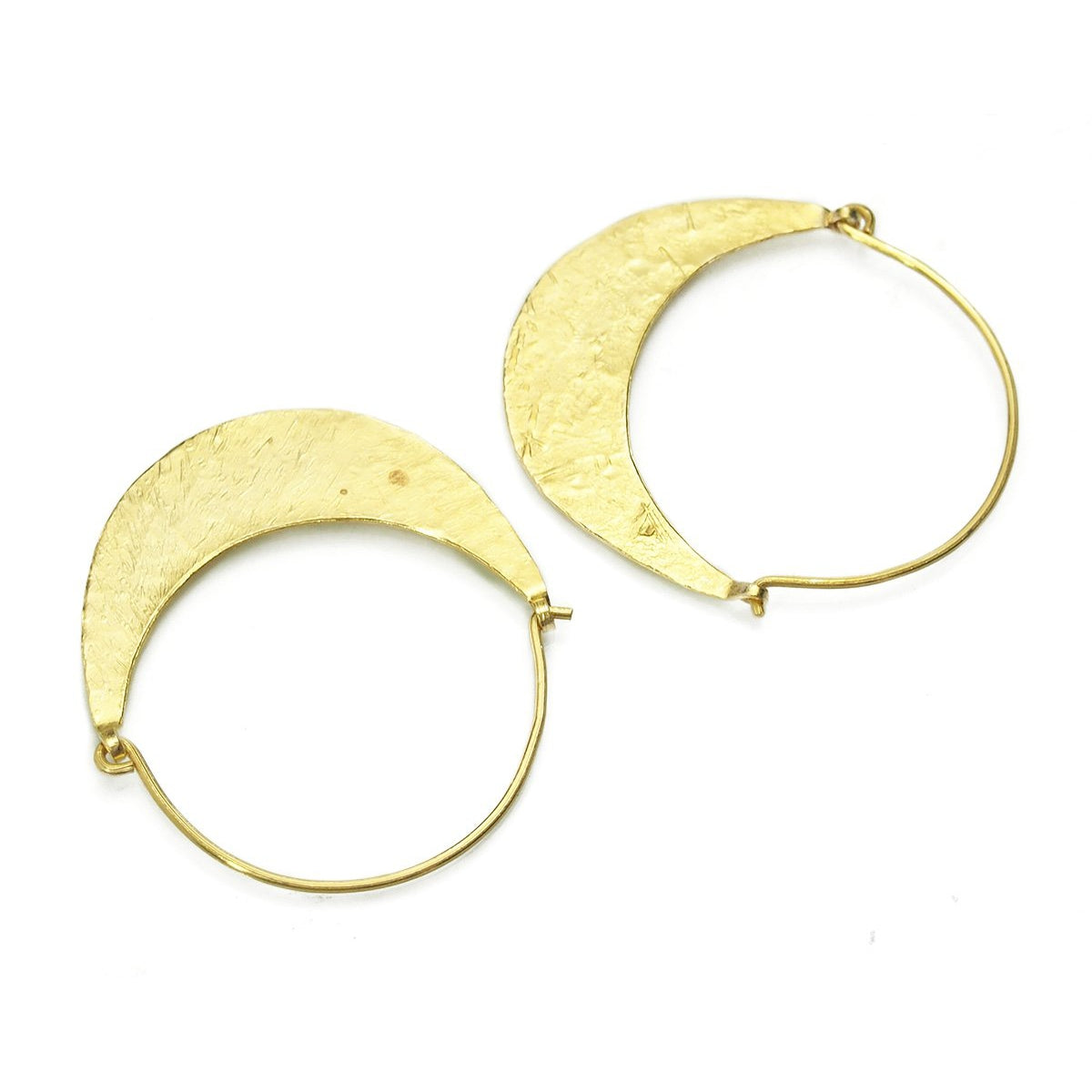 • Gold Vermeil over Sterling Silver Hand Hammered Flat Half Moon Hoop Earrings