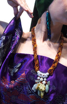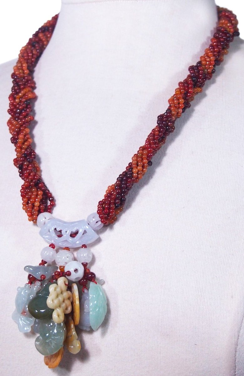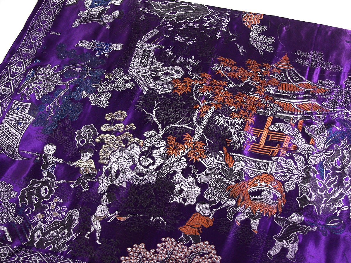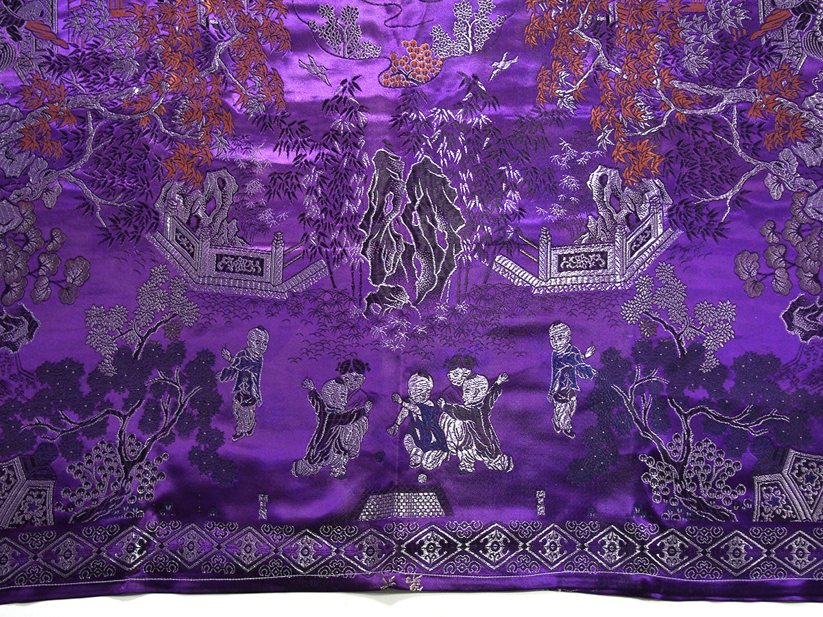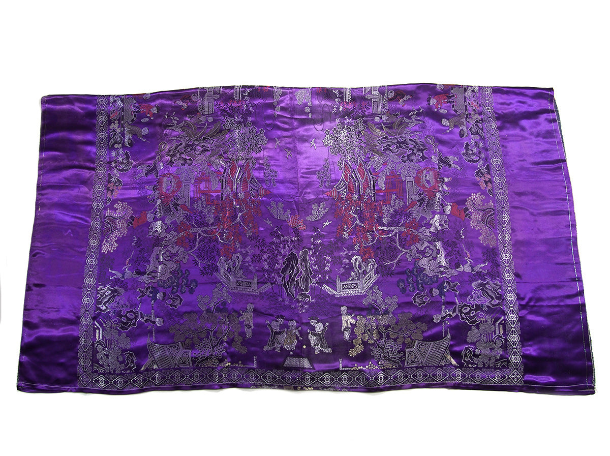Ensemble 3: Chinese Wall Hanging and Indonesian Sarong with Peacock Feather Earrings and Jade Necklace - Each Item Sold Separately